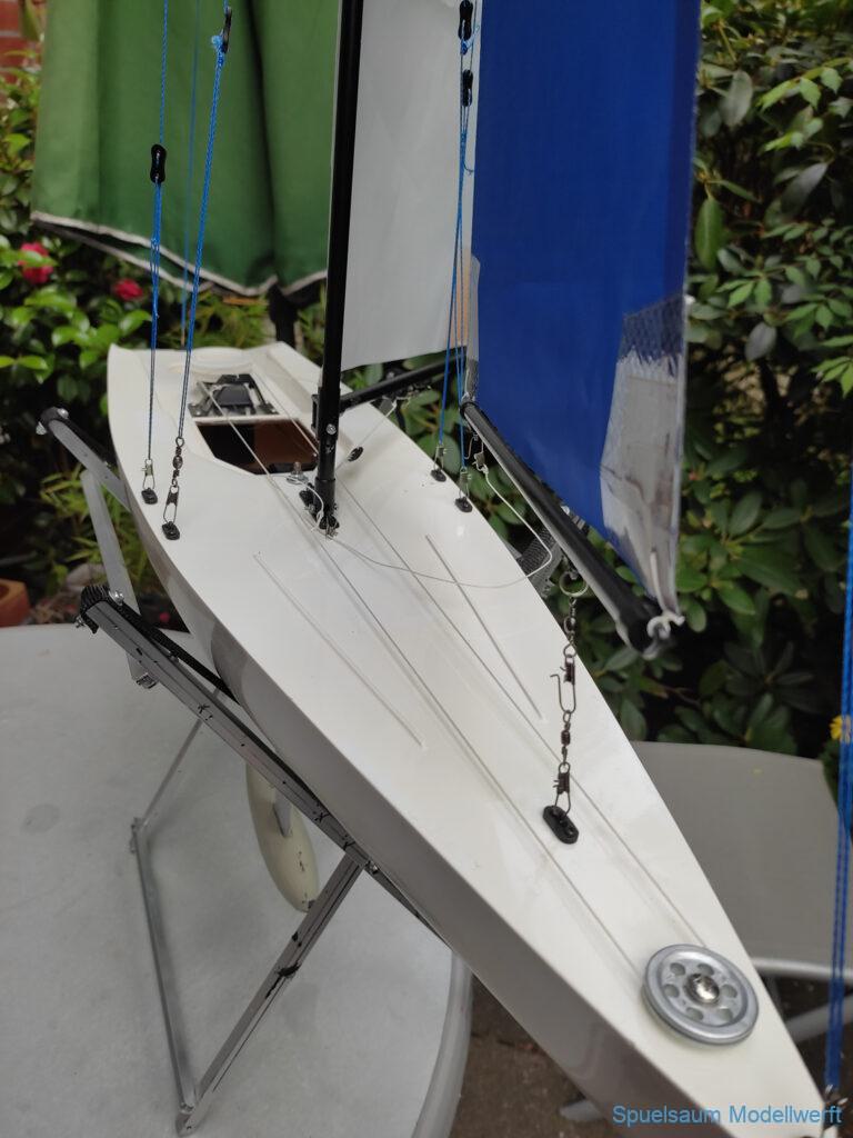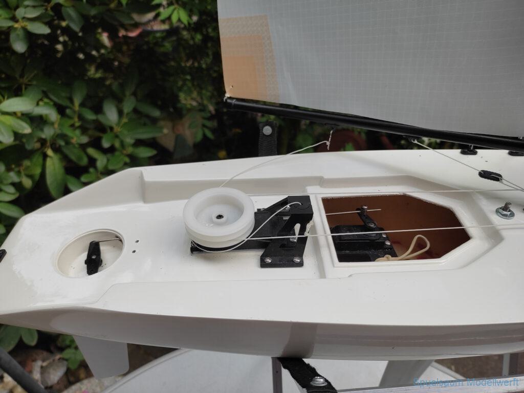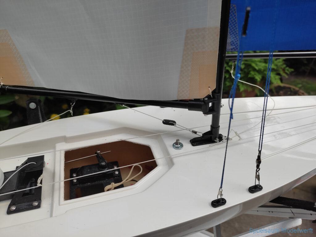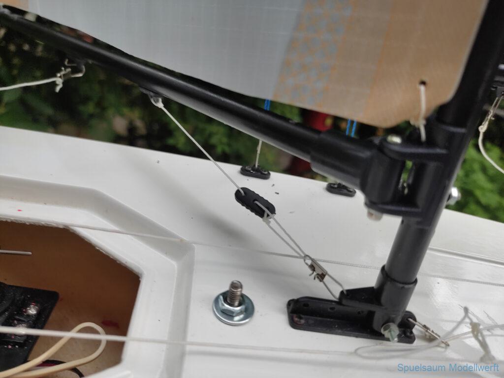 Großbaumschot und Fockshot sehen beide falsch aus, die sind viel zu lang. Es muss aber erstmal RC eingebaut werden (mal wieder Teile suchen) dann sehen wir weiter. Kürzen wäre kein Problem.