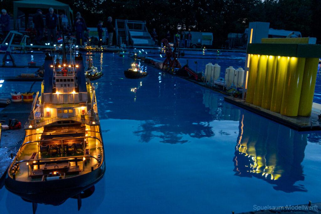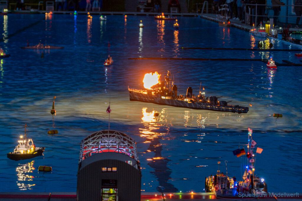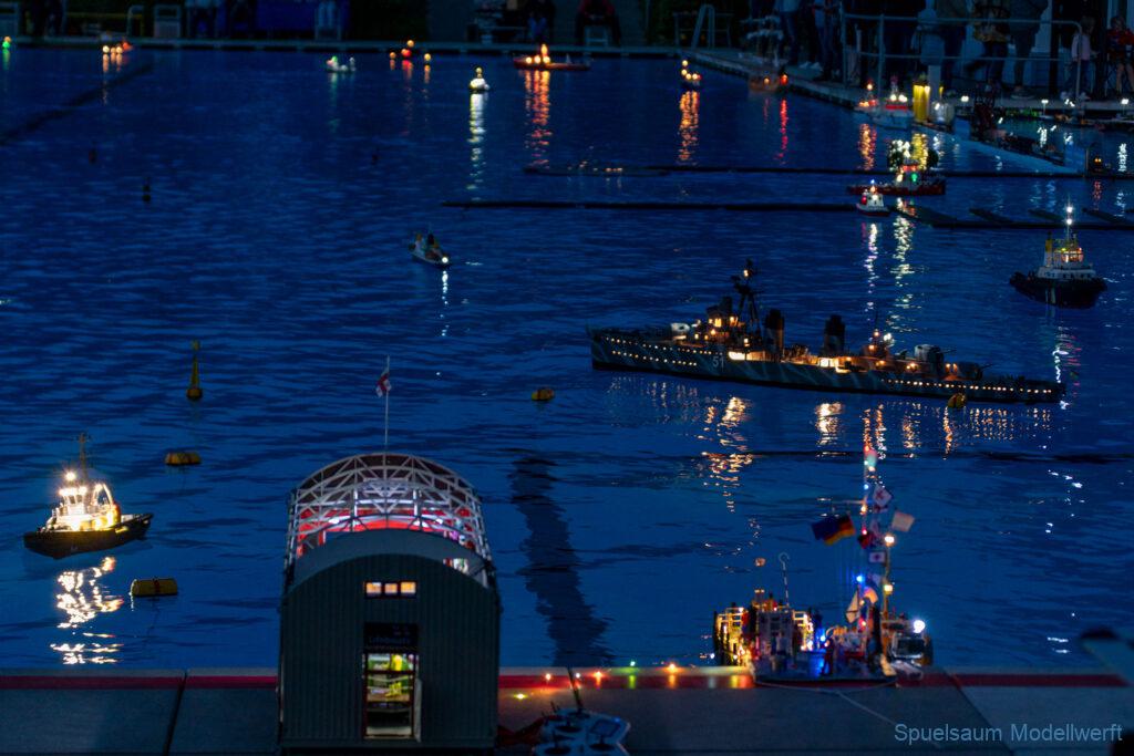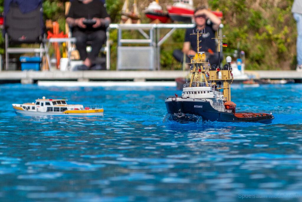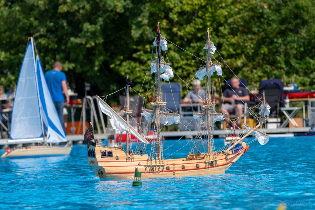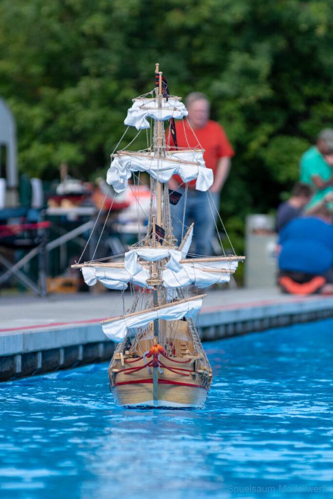 Zwischendurch geht’s immer mal wieder ums Schwimmbecken oder über den Platz, natürlich auch zum Kiosk. Dabei ergeben sich viele nette Gespräche über die ausgestellten Schiffe (am Ende, wie immer, viel zu wenige). Fotos habe ich diesmal nur begrenzt gemacht, meist nur wenn ich für mich oder auf Anfrage Schiffe fotografiert habe. Wer zu der Zeit günstig im Wasser war ist dann draufgekommen. Die Auswahl ist also keine Wertung sondern überwiegend Zufall.