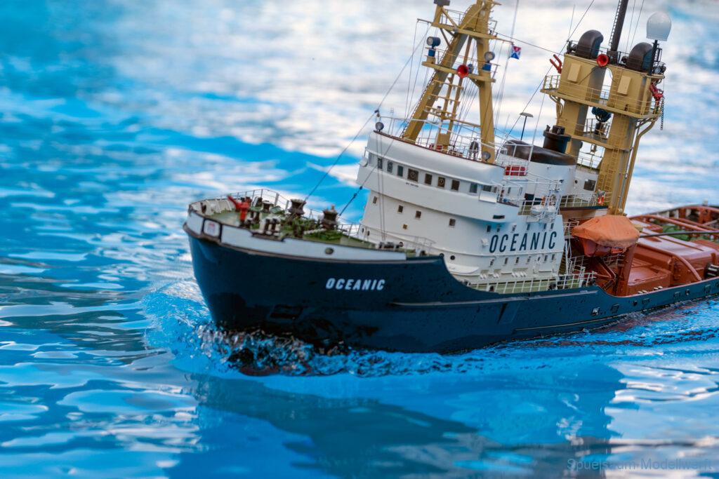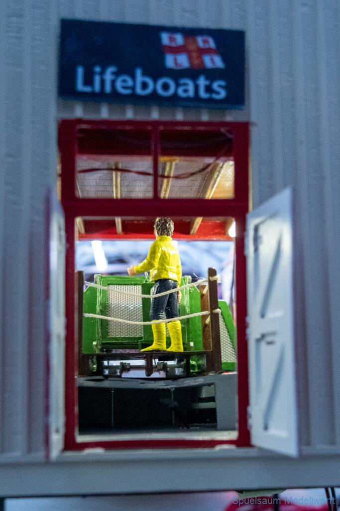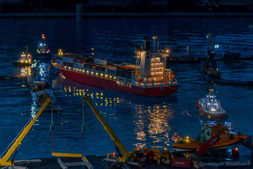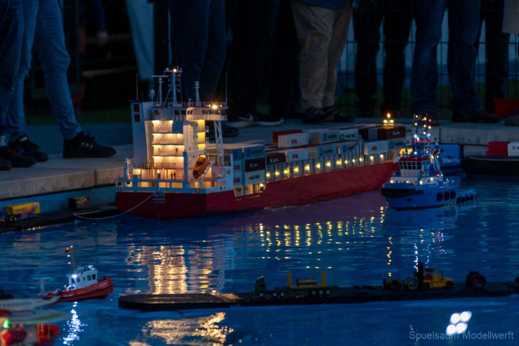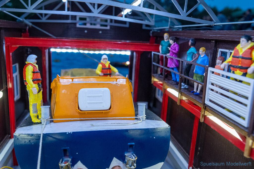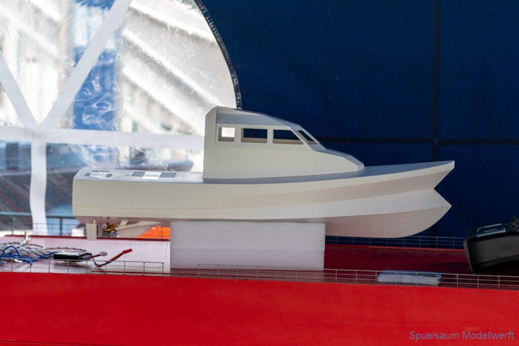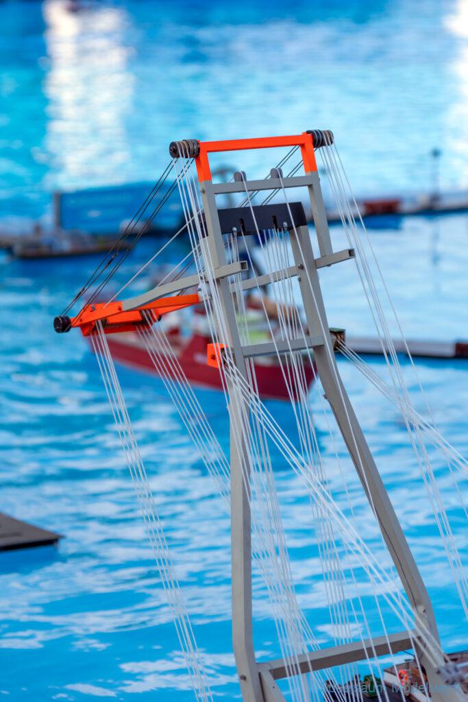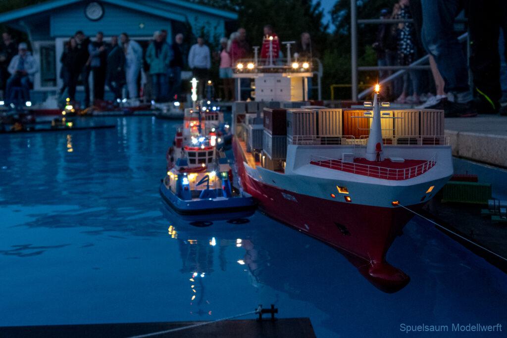 8:45 angekommen, das Auffahren auf den Platz zum Ausladen ist dieses Jahr reglementiert (Rettungsschutz Auflagen), das macht das Durchkommen mit meinen Kisten etwas leichter. Gegenüber der Einfahrt kann man auch kurz Parken und Ausladen. Wegen Bootshaus und Ponton stehe ich wieder Abseits meines Vereins (SMC Elmshorn) neben der Schwimmbad-Rutsche. Das kleine Eingangsbecken ist wie gewohnt mit der stetig wachsenden Hafenanlage belegt (Wahnsinn). Meinen Aufbau habe ich dieses Mal etwas anders geregelt, erst Bootshaus, dann Segler und schließlich der Seenotretter Ponton mit der WILMA SIKORSKI. Wie schon letztes Mal geht der Aufbau nur langsam voran, weil es immer wieder zu Gesprächen kommt – diesmal bin ich darauf vorbereitet und mache mir keinen Stress.