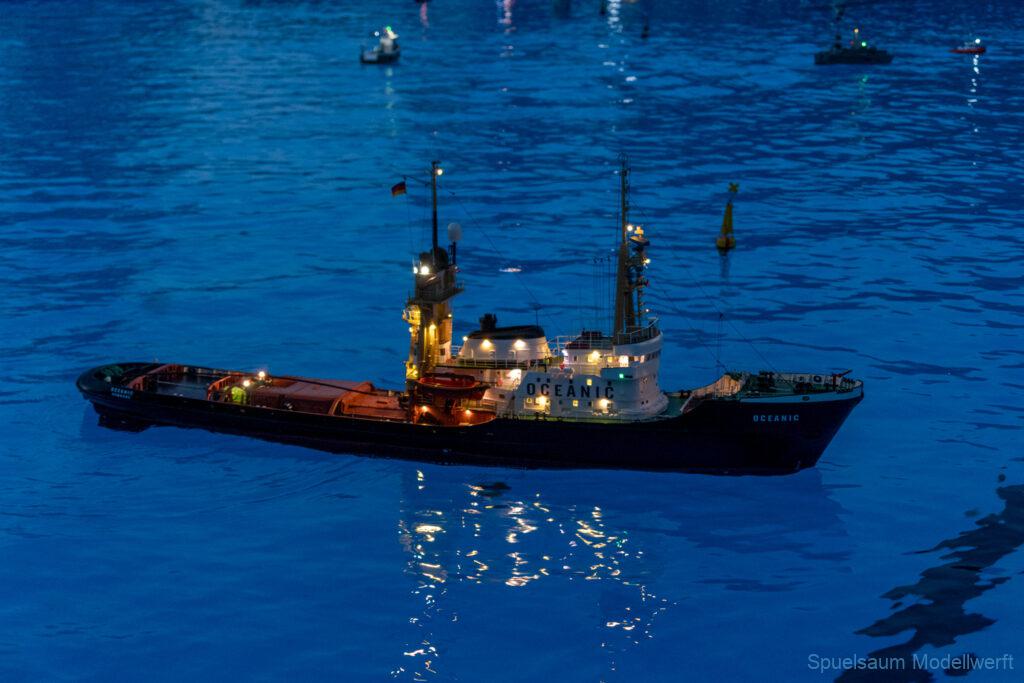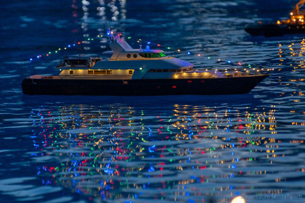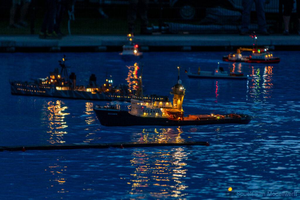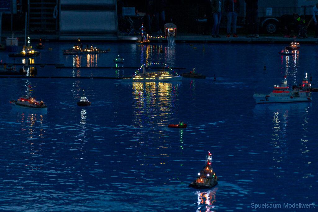 Die GESINA ist natürlich auch dabei, sie ist aber als Kameraträger und für die Nachtfahrt vorgesehen, dafür hatte sie extra die Lichterkette der LÜBECK II bekommen (die ich dann vergessen hatte anzuschalten).