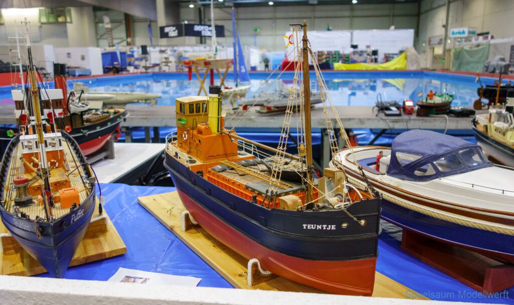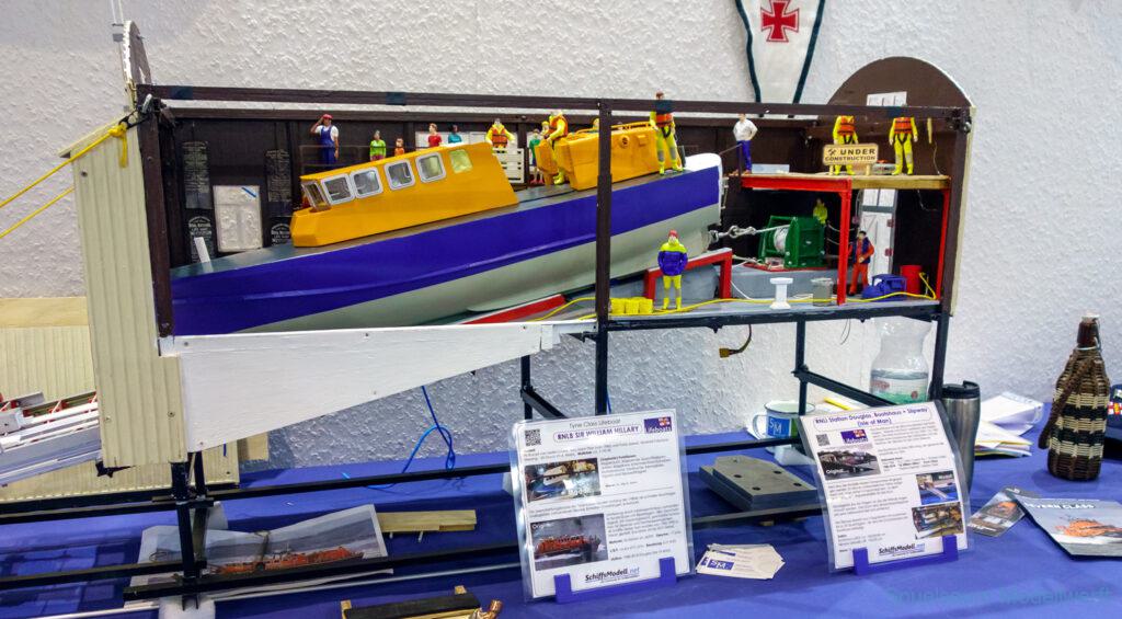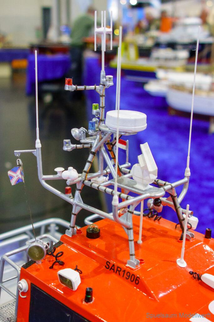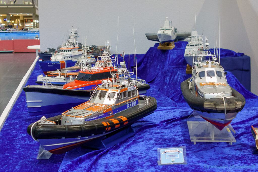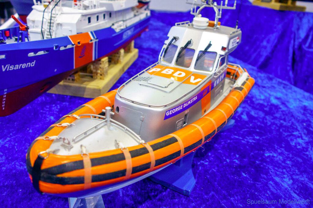 Natürlich hab ich auch ander Stände besucht. Für Fotos gerne morgens gleich nachdem die Halle aufgemacht hatte. Aber auch später kam ich noch mit dem einen oder anderen ins Gespräch. Durchweg wurde nett und freundlich auf meine Fragen geantwortet oder über Modelldinge oder die Messe an sich sinniert. Am Nebenstand waren einige holländische Seenotrettungsschiffe ausgestellt, dort bekam ich ausführliche Infos zum Bau, bis hin zum Graben in alten Fotos um mir zu zeigen, wie die umlaufenden Stoßschutzprofile (beim RIB) befestigt wurden.
