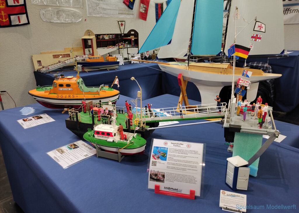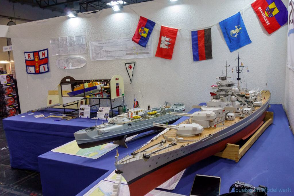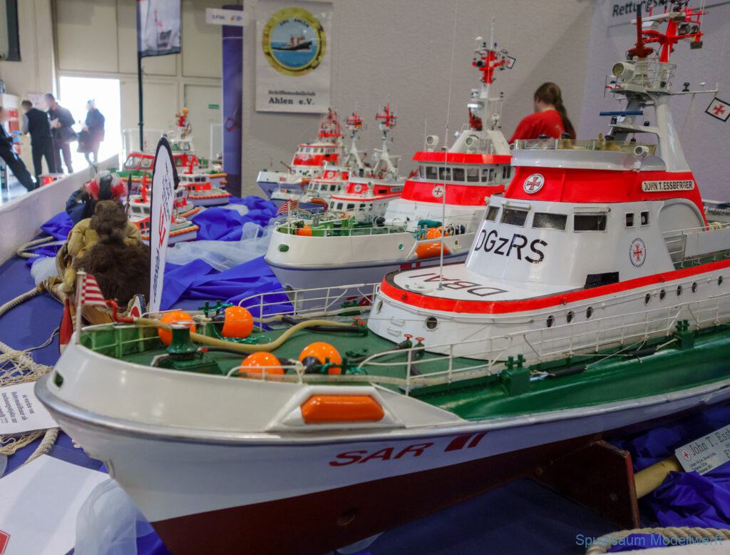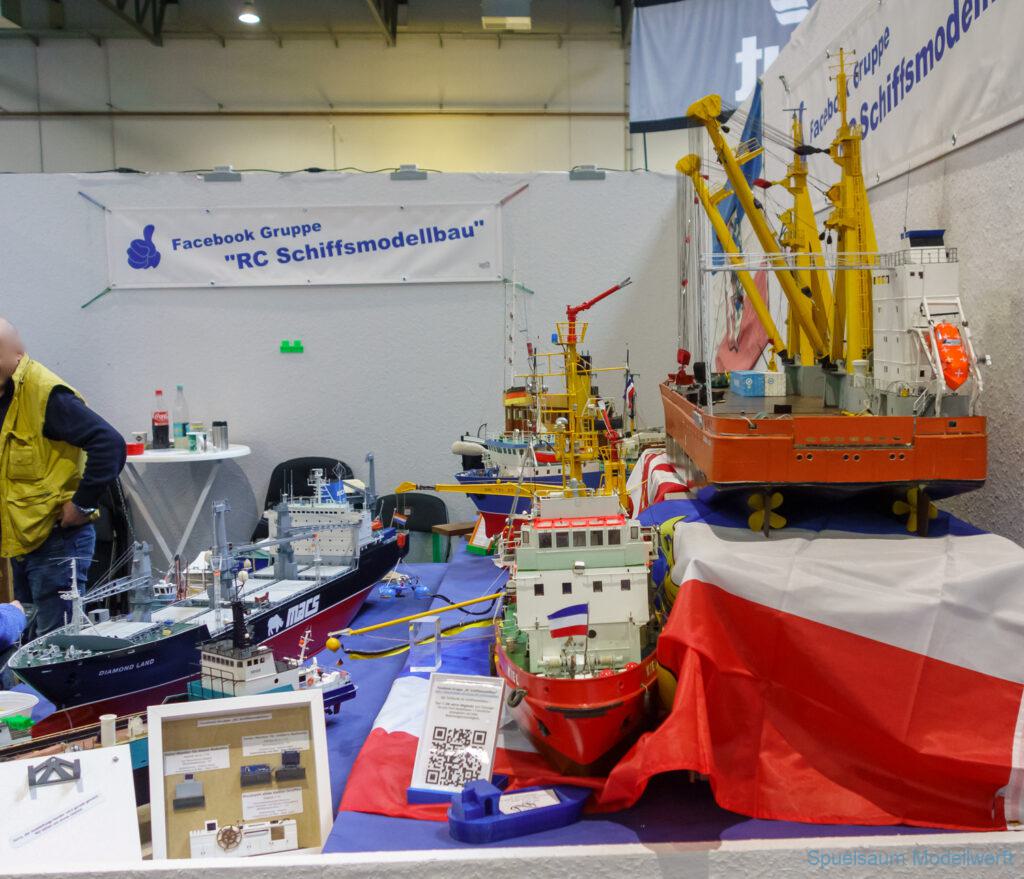 Natürlich hab ich auch ander Stände besucht. Für Fotos gerne morgens gleich nachdem die Halle aufgemacht hatte. Aber auch später kam ich noch mit dem einen oder anderen ins Gespräch. Durchweg wurde nett und freundlich auf meine Fragen geantwortet oder über Modelldinge oder die Messe an sich sinniert. Am Nebenstand waren einige holländische Seenotrettungsschiffe ausgestellt, dort bekam ich ausführliche Infos zum Bau, bis hin zum Graben in alten Fotos um mir zu zeigen, wie die umlaufenden Stoßschutzprofile (beim RIB) befestigt wurden.