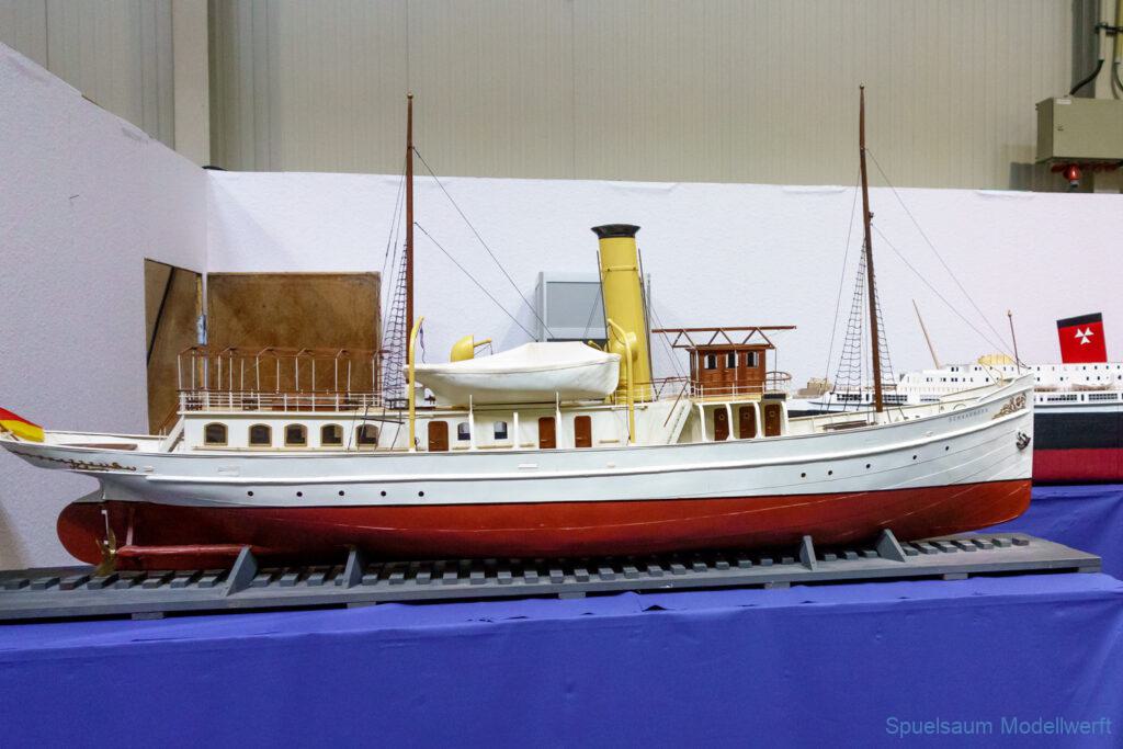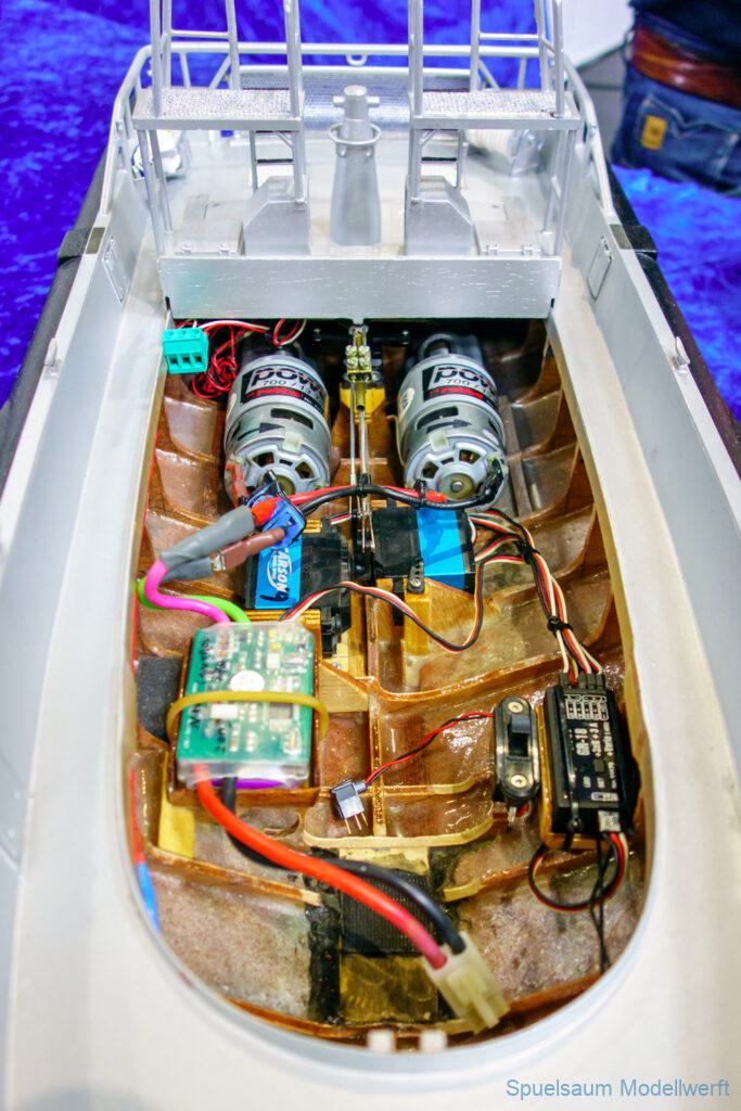 Geschichten, genau das gab es bei meinen Projekten (nennt mich gern Sabbeltasche), die ja meist eher ungeplant und aus Zufällen entstanden sind. Motorleistung, Regler, Umdrehungen, Propellergröße, Geschwindigkeit und sowas kann ich mir nicht merken, dafür öffne ich aber gerne mal die GESINA oder eines der anderen Boote. Bei vielen Modellbauern kommt man schnell ins fachsimpeln oder diskutiert Löungsmöglichkeiten für zukünftige Funktionen. (ein Vorteil, wenn die Projekte noch in Bau sind) Andere Besucher bedanken sich für die Erklärungen zu den Modellen unter denen sie sich zu Beginn (Bootshaus) nicht so richtig etwas vorstellen konnten. Und wenn man dann kurz vor Schluss mit zwei eindeutige als Modellbahner erkennbaren Besuchern über die automatische Positionierung des Magneten auf der Slipway sinniert dann kann ich nur sagen für mich ist es von Anfang bis Ende eine gelungene Veranstaltung.