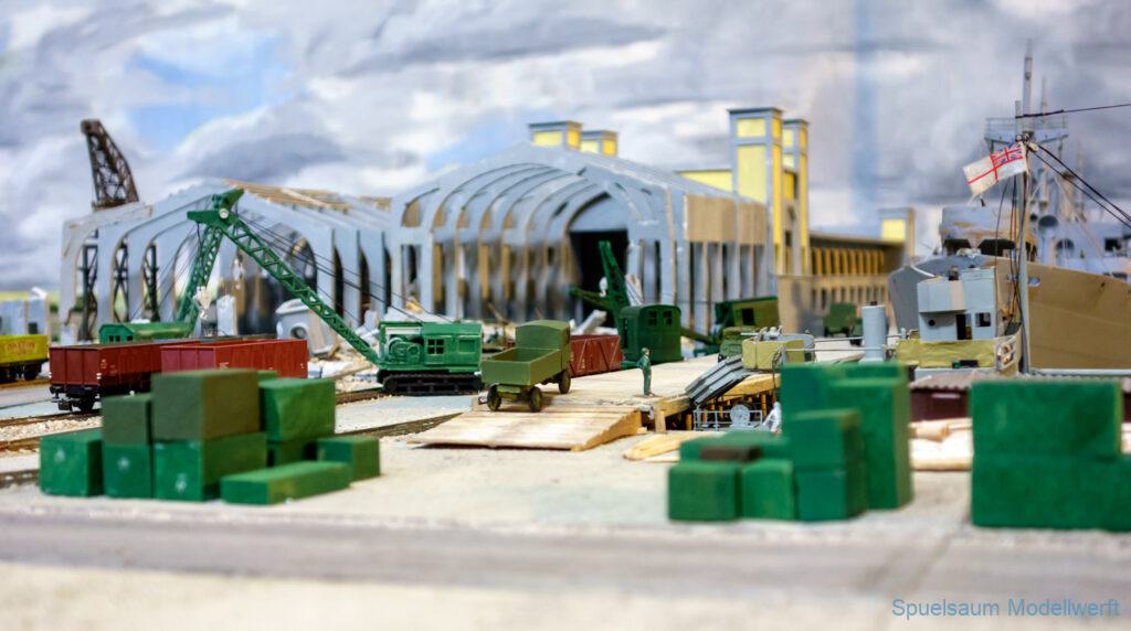 Die Zeit rennt und alles dauert natürlich länger als gedacht – ist eben kein Bausatzbauen. Leider habe ich die Beleuchtung des 1/87 Tugs nicht mehr geschafft. Die verzögerte Lieferung der bedrahteten LEDs (im Februar bestellt, im Mai immer noch nicht angekommen) halfen dabei auch nicht gerade. Der Weiterbau wurde im Februar unterbrochen und es ging an das Bootshaus mit dem Tyne.