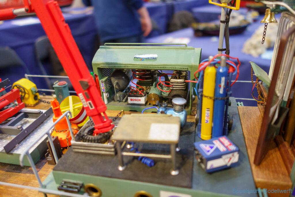 Als es am späten Nachmittag ruhiger wurde habe ich mich auch mal in andere Hallen aufgemacht, das ein oder andere Werkzeug gekauft und die Südost Zufahrt des hamburger Hauptbahnhofs zur Kaiserzeit erklärt bekommen, mit dem ‚Burgerzug‘ – einem Viehtransport zum Schlachthof an der Sternschanze. So richtig aufnahmefähig war mein Hirn dann aber doch nicht mehr. Von Eisenbahn über Trucks bis Mikromodellbau, man kan überall Ideen abschauen um sie auf Bootsprojekten umzusetzen. Dann eben beim nächsten Mal.