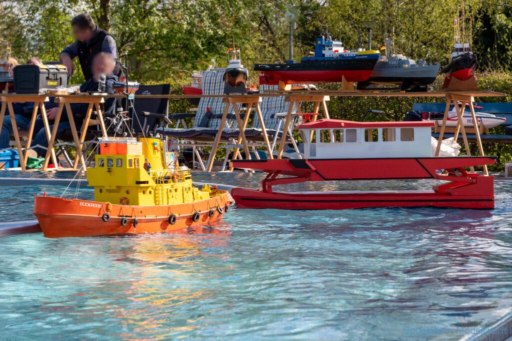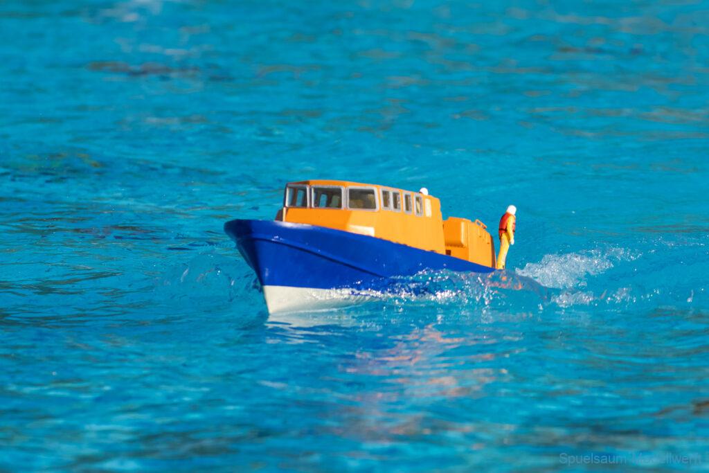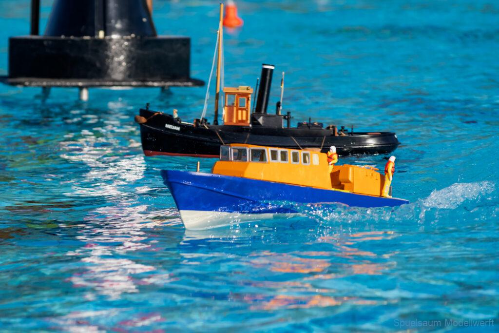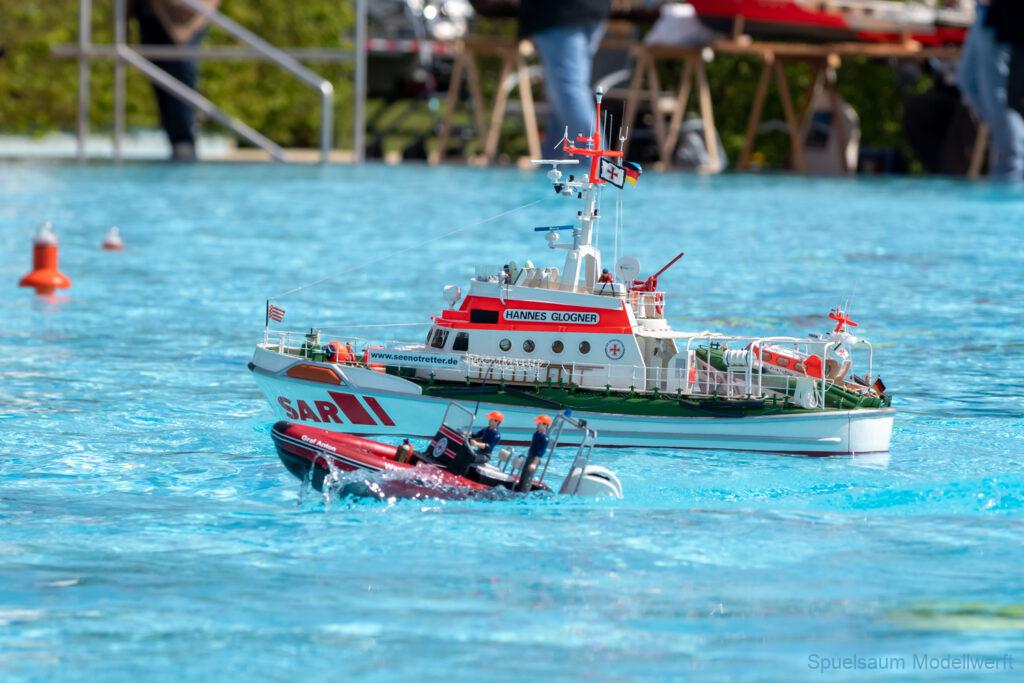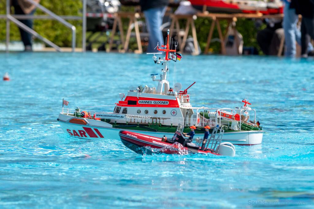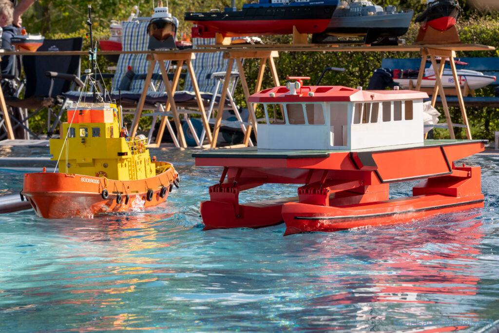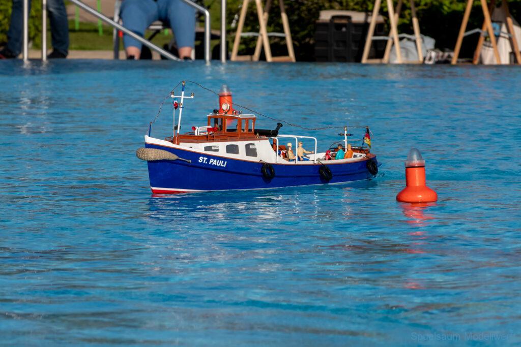 Die kleine MAX CARSTENSEN hatte einen Einsatz zur Rettung eines Dampfbootes, wobei ich leider am Steuer war und keine Fotos machen konnte. Die Gesina hat ein paar Runden gedreht, sich bei den Windböen und durch die Unterströmung aber öfters losgerissen. Da musste sie ab und an mal Pause machen auf dem Poolrand. Als am frühen Abend weniger los war hab ich sie einfach stromern lassen, sie ist ja schon groß.