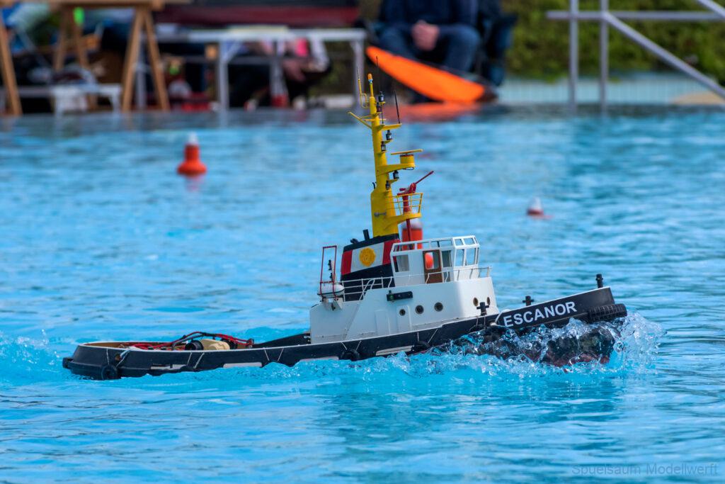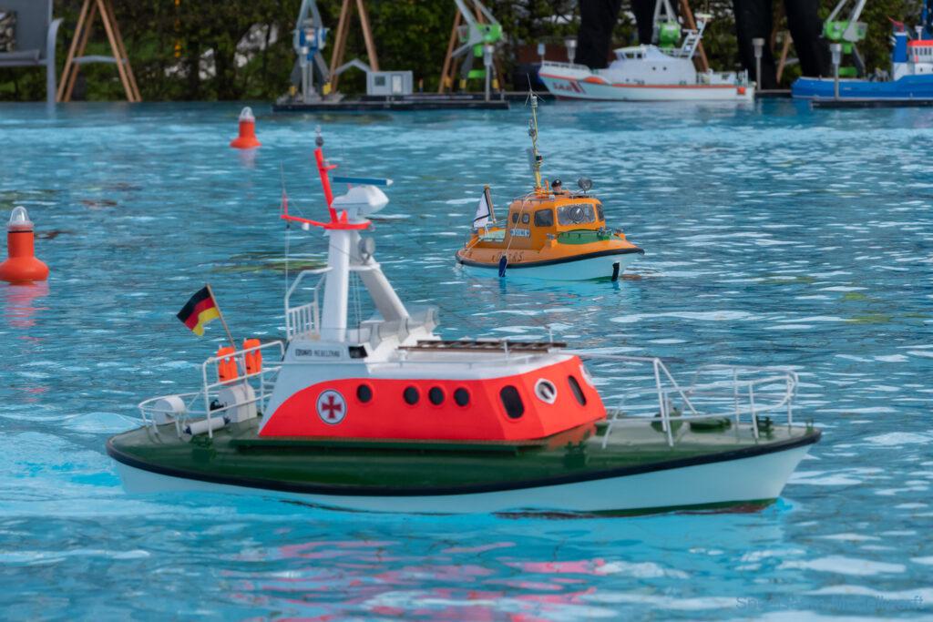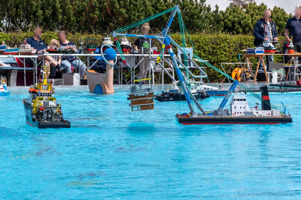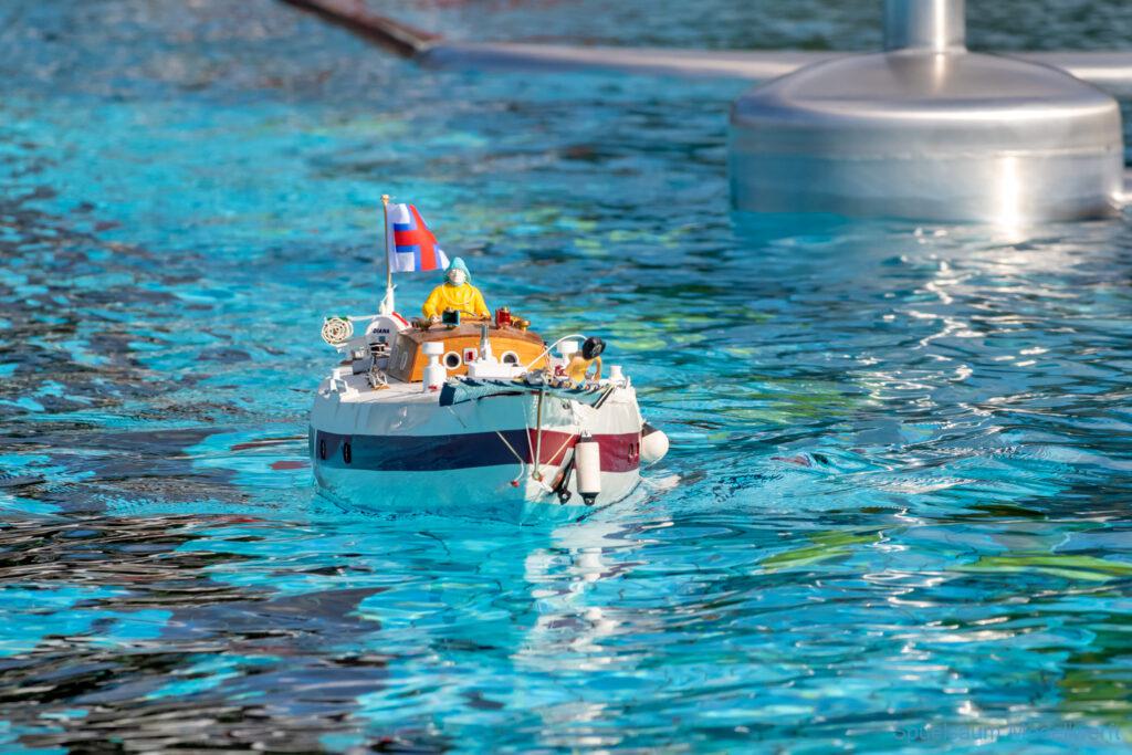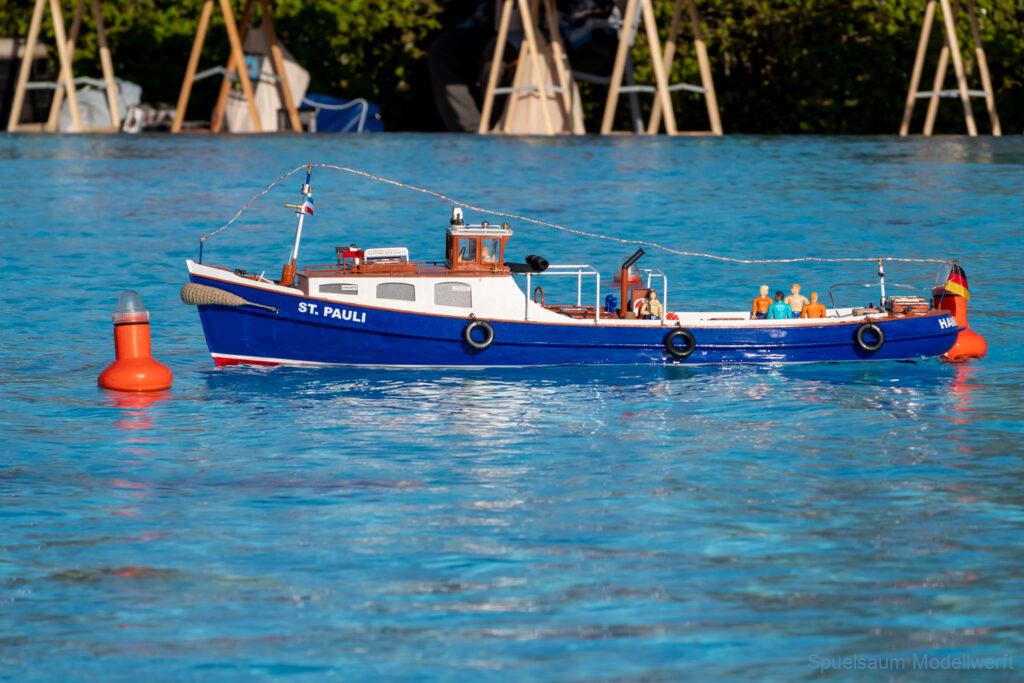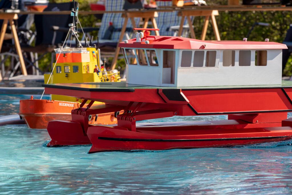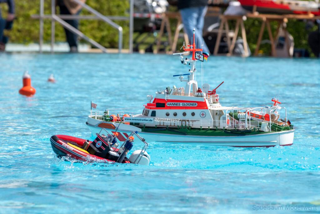 Die kleine MAX CARSTENSEN hatte einen Einsatz zur Rettung eines Dampfbootes, wobei ich leider am Steuer war und keine Fotos machen konnte. Die Gesina hat ein paar Runden gedreht, sich bei den Windböen und durch die Unterströmung aber öfters losgerissen. Da musste sie ab und an mal Pause machen auf dem Poolrand. Als am frühen Abend weniger los war hab ich sie einfach stromern lassen, sie ist ja schon groß.