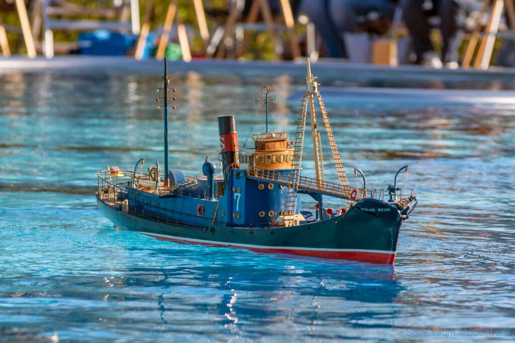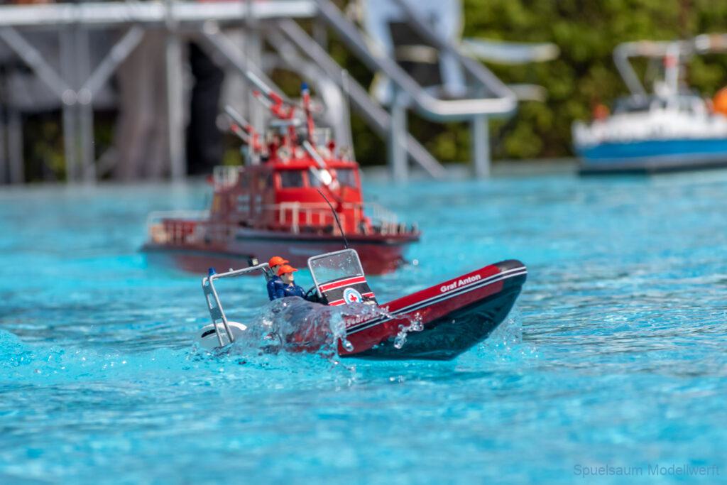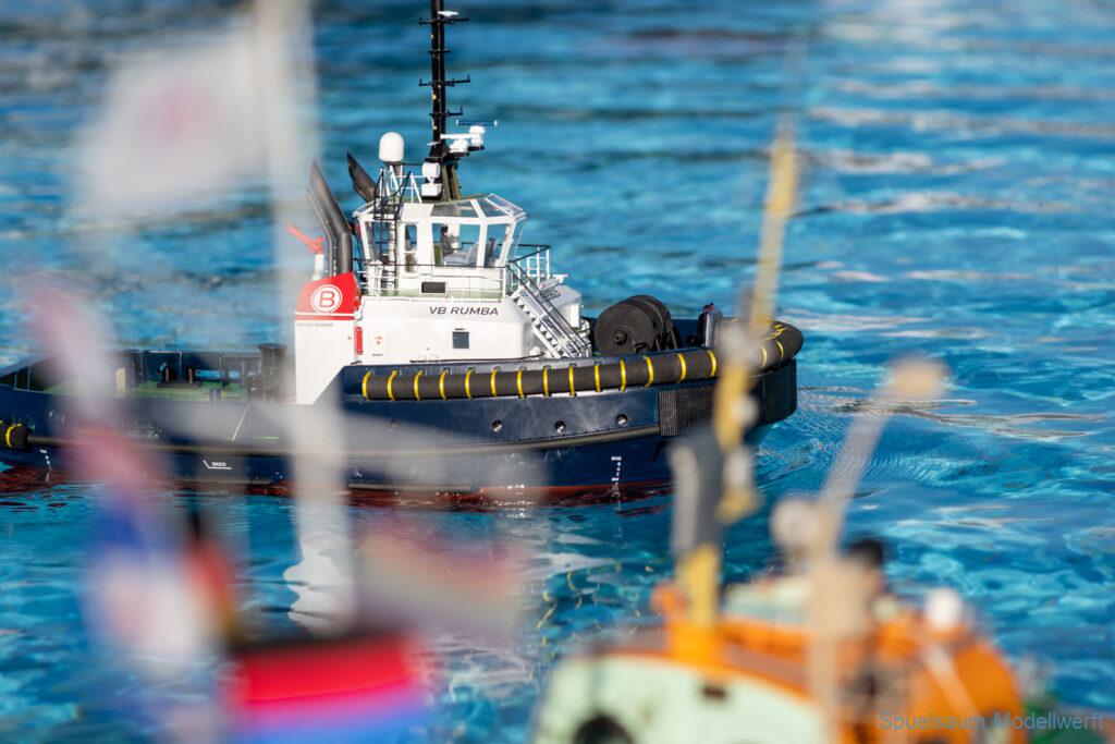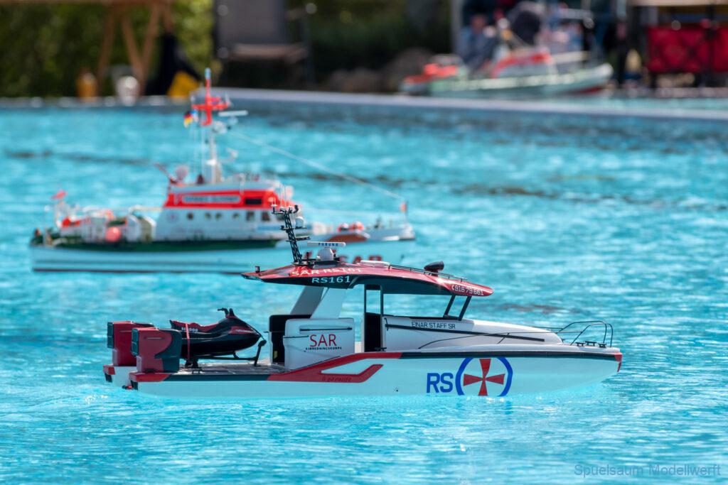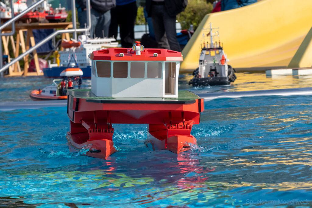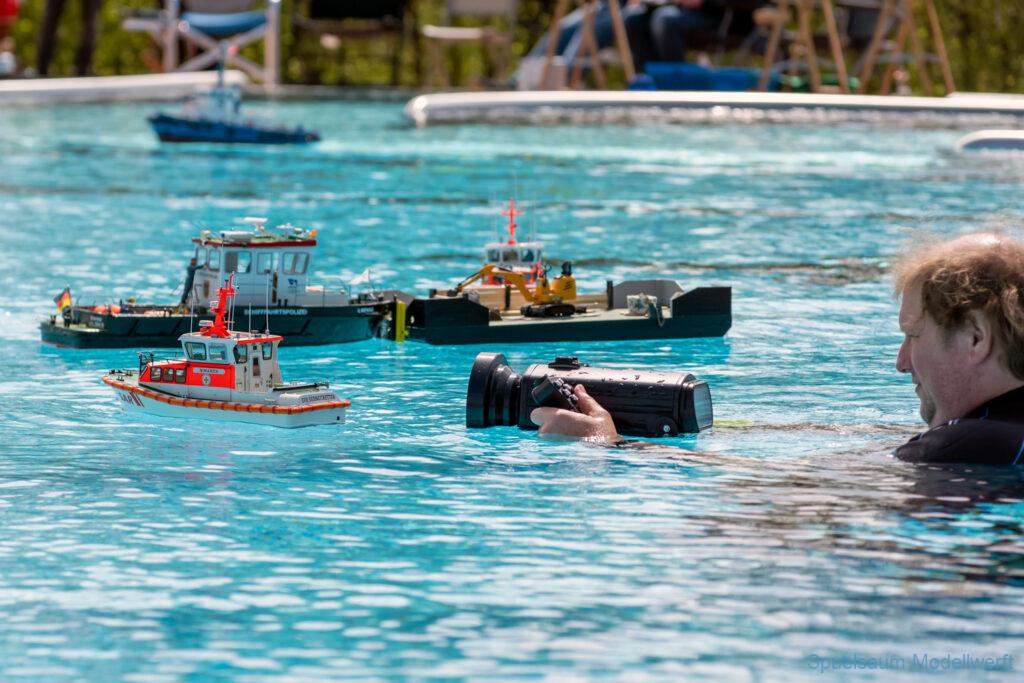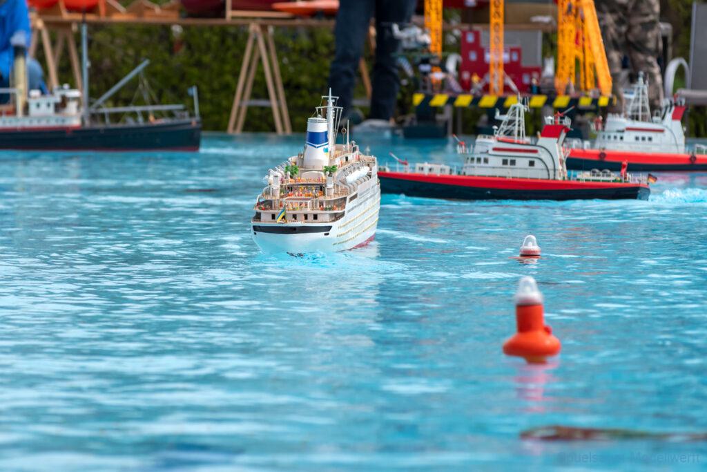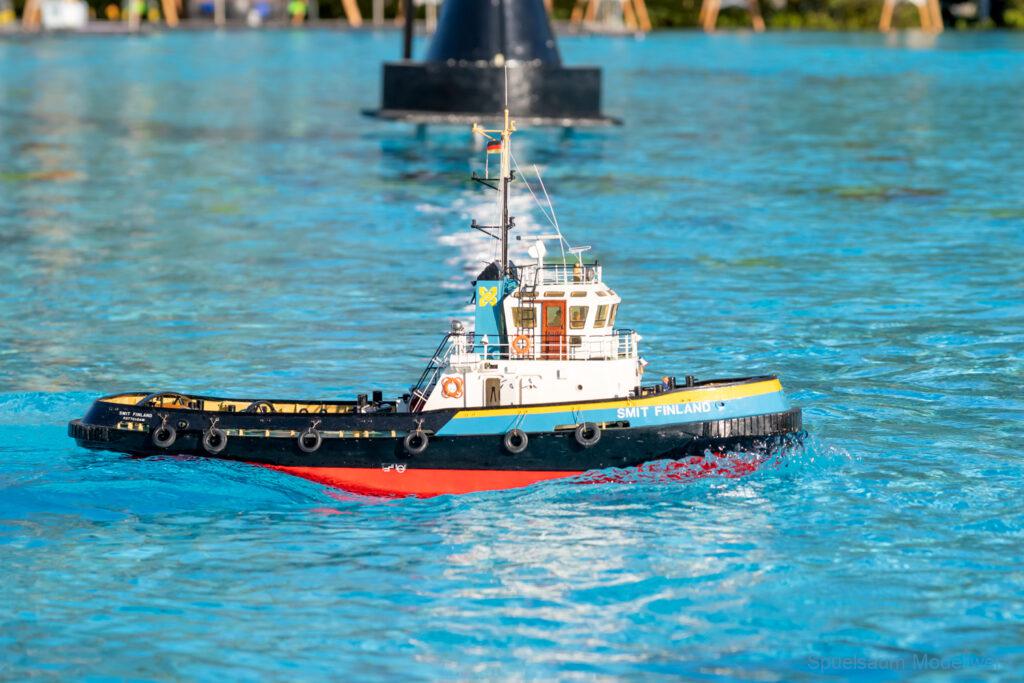 Die kleine MAX CARSTENSEN hatte einen Einsatz zur Rettung eines Dampfbootes, wobei ich leider am Steuer war und keine Fotos machen konnte. Die Gesina hat ein paar Runden gedreht, sich bei den Windböen und durch die Unterströmung aber öfters losgerissen. Da musste sie ab und an mal Pause machen auf dem Poolrand. Als am frühen Abend weniger los war hab ich sie einfach stromern lassen, sie ist ja schon groß.