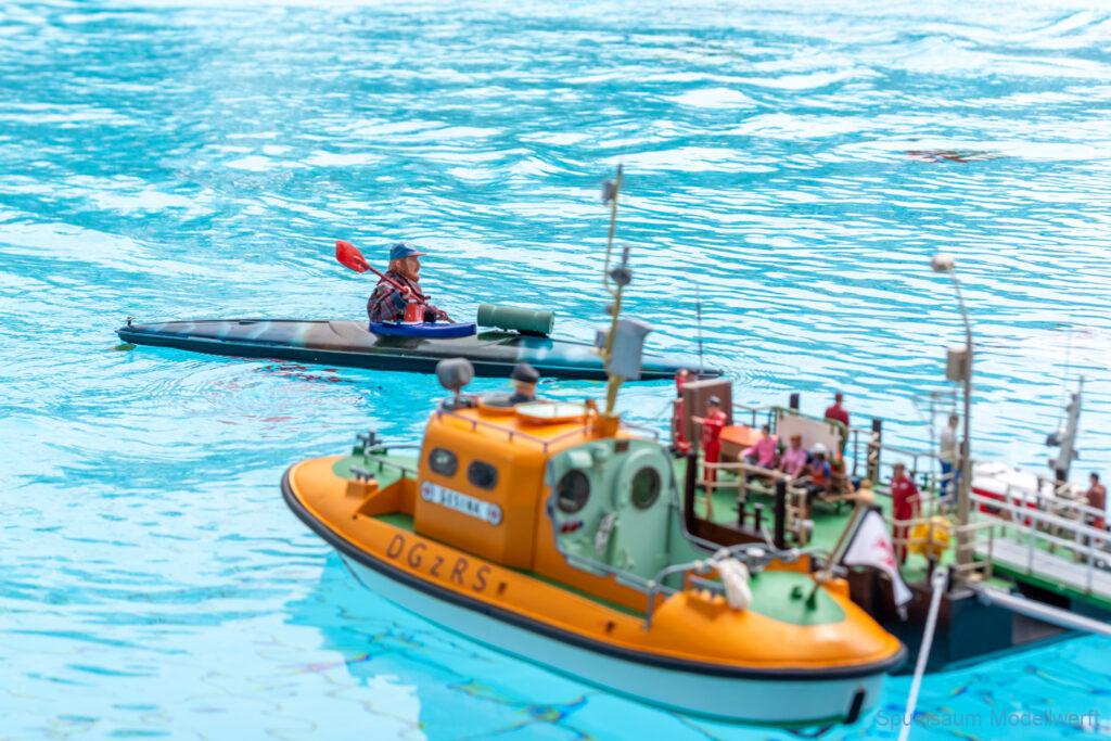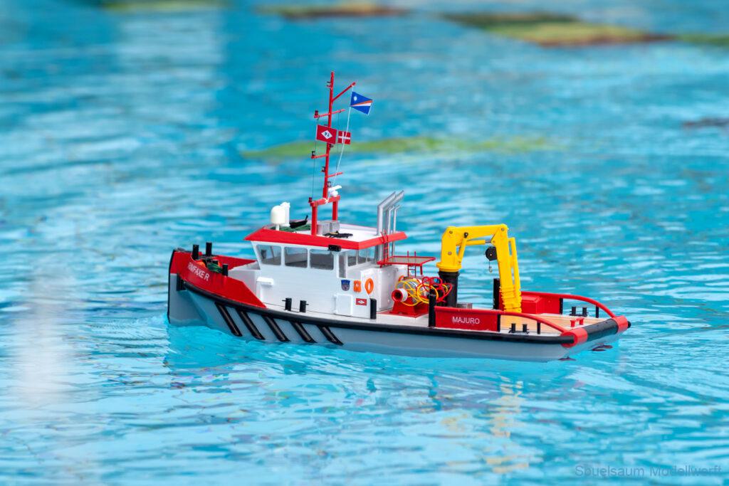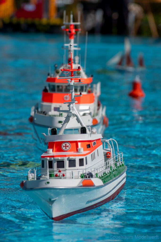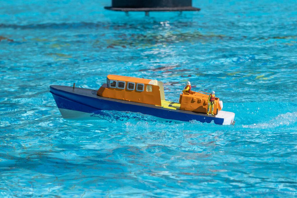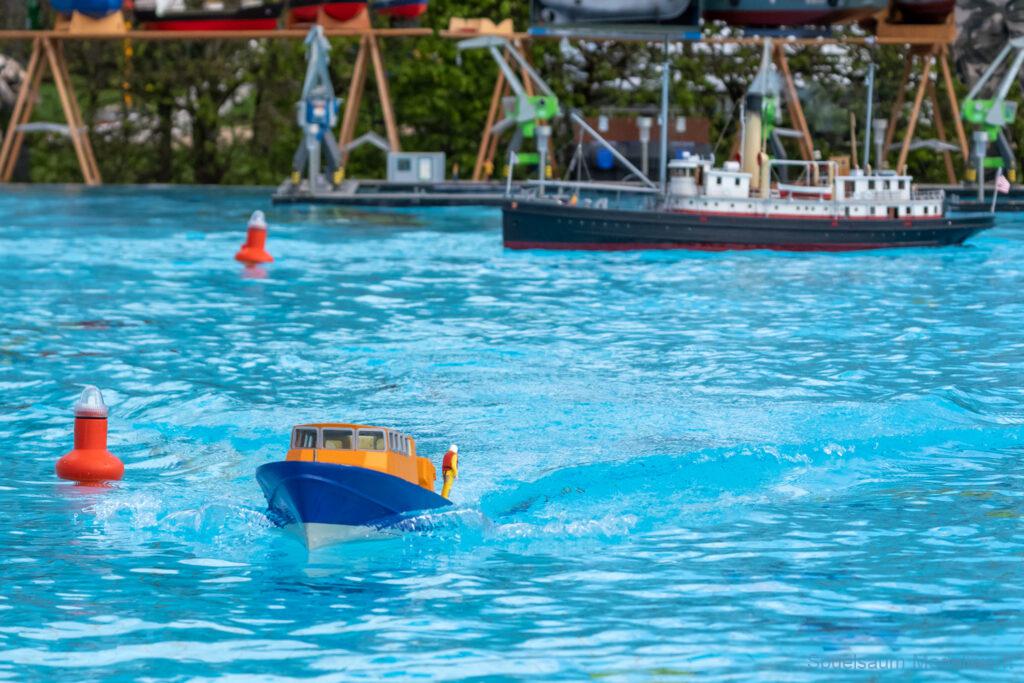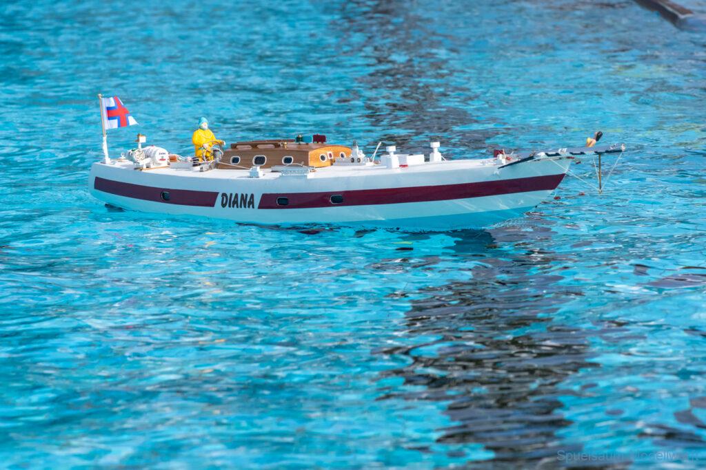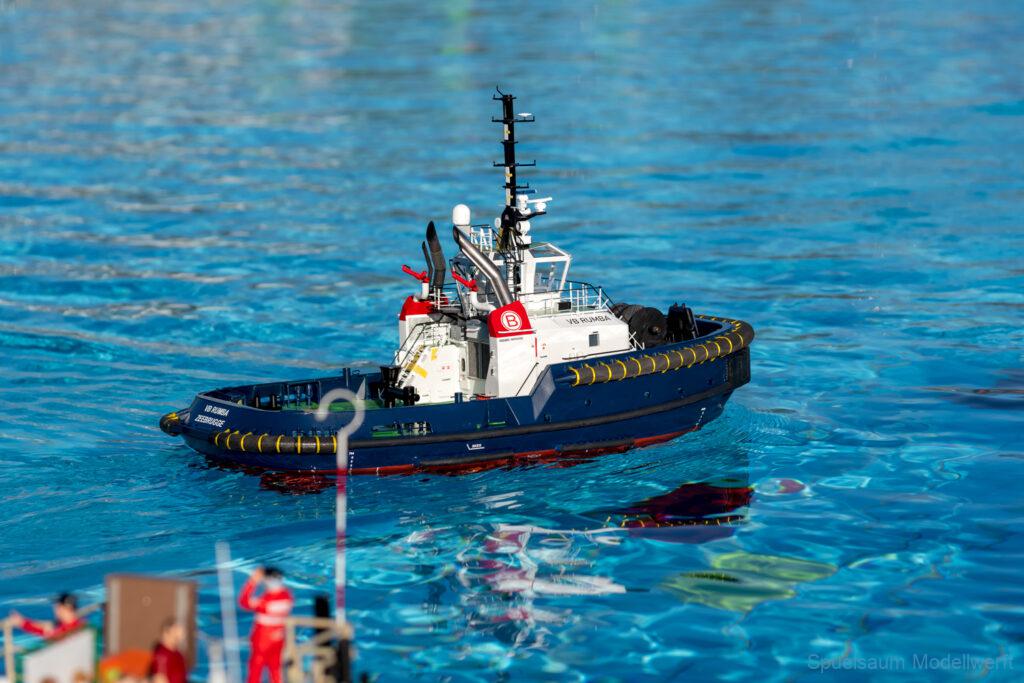 Die kleine MAX CARSTENSEN hatte einen Einsatz zur Rettung eines Dampfbootes, wobei ich leider am Steuer war und keine Fotos machen konnte. Die Gesina hat ein paar Runden gedreht, sich bei den Windböen und durch die Unterströmung aber öfters losgerissen. Da musste sie ab und an mal Pause machen auf dem Poolrand. Als am frühen Abend weniger los war hab ich sie einfach stromern lassen, sie ist ja schon groß.