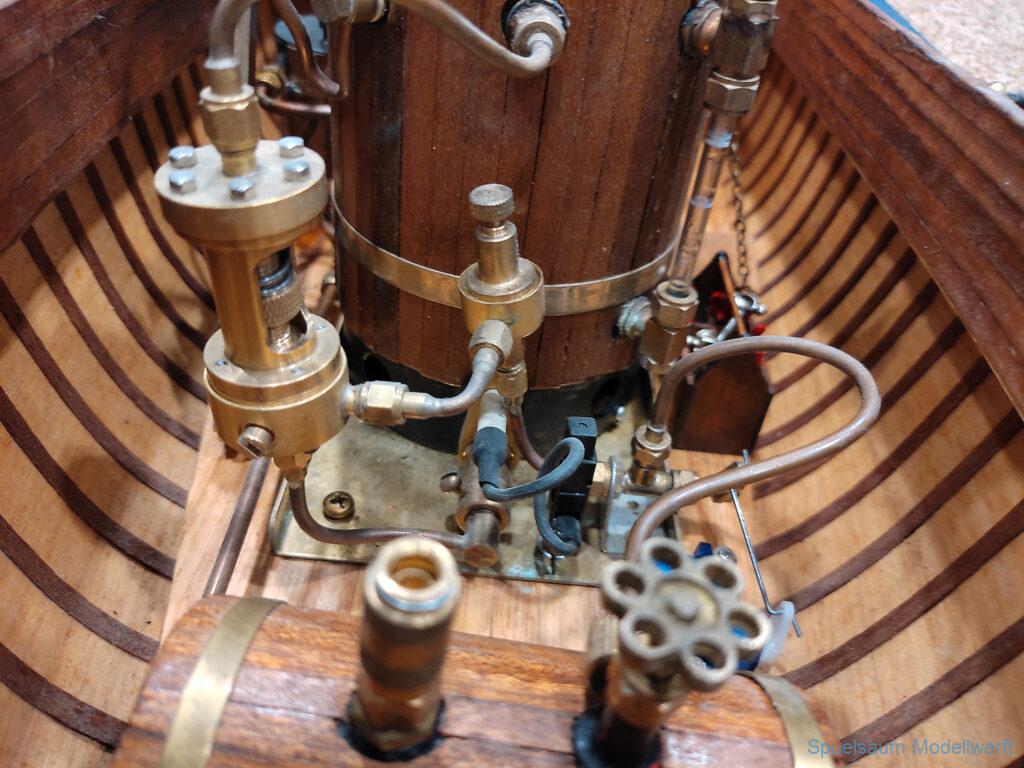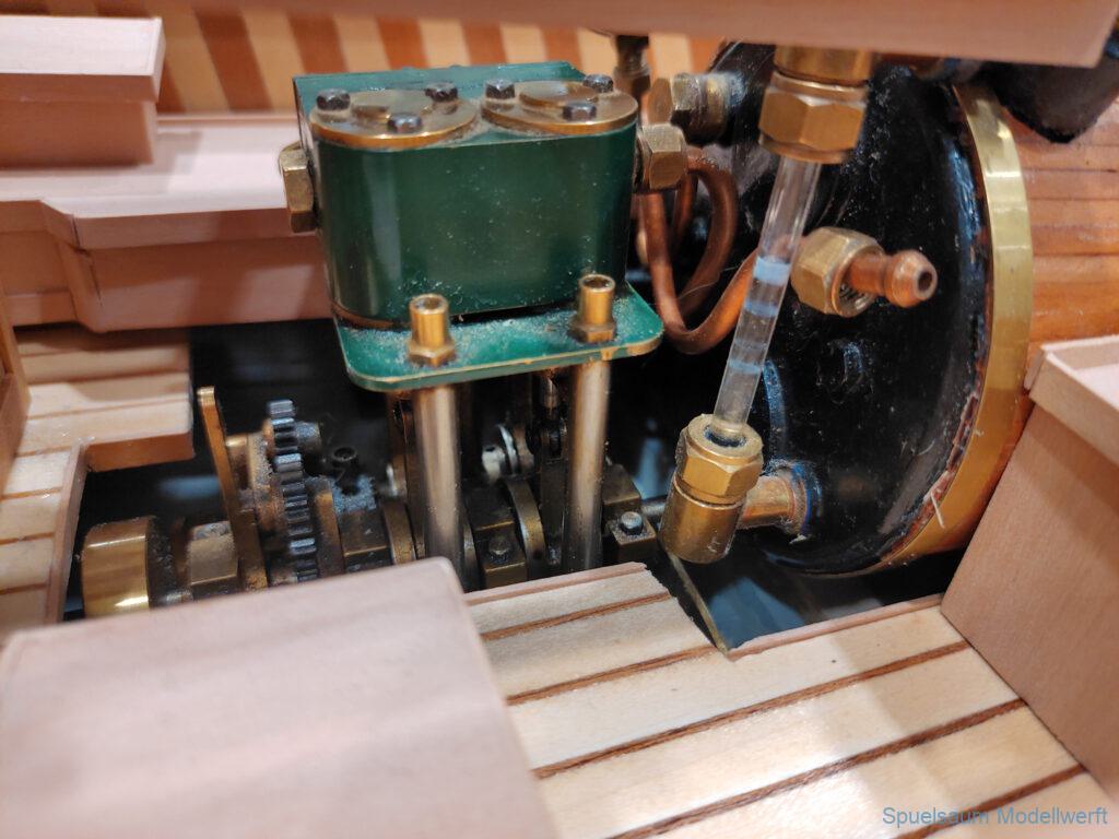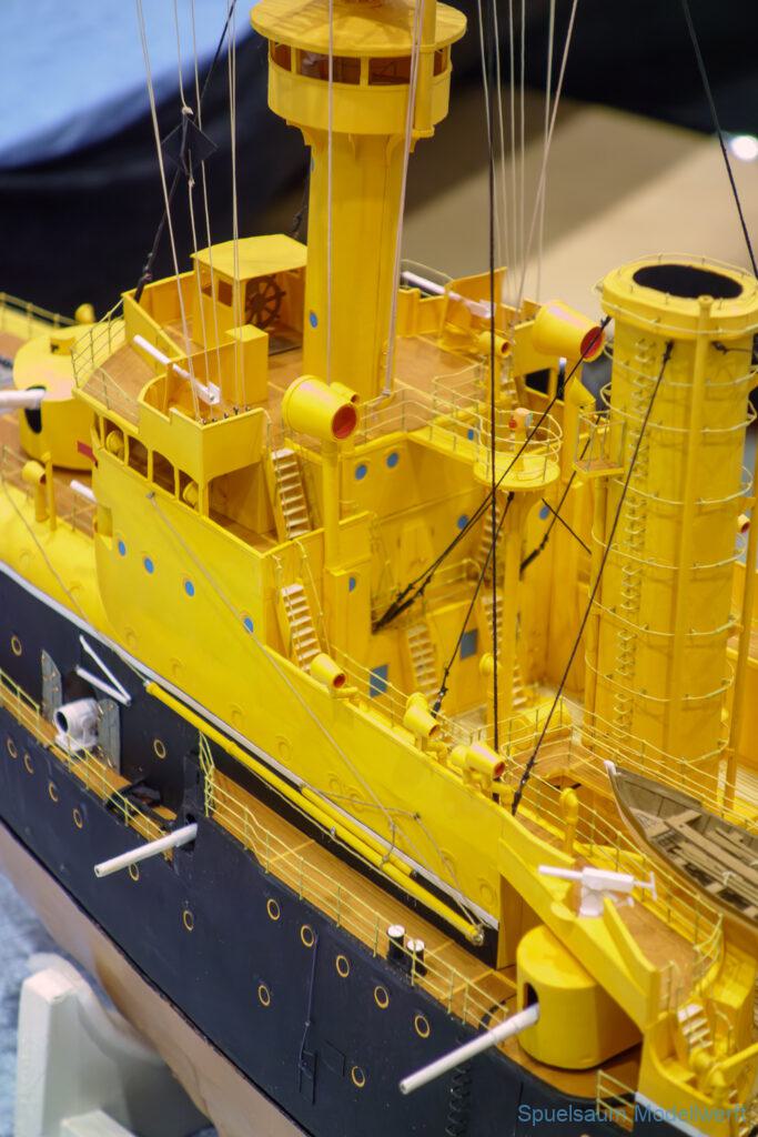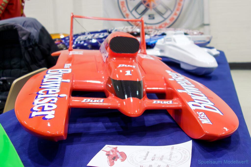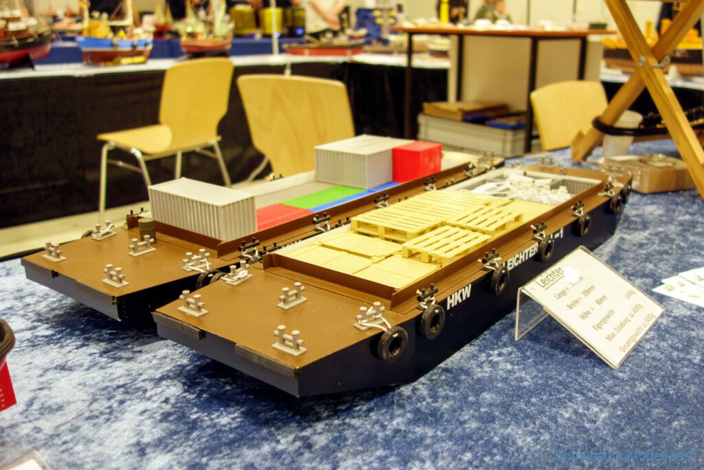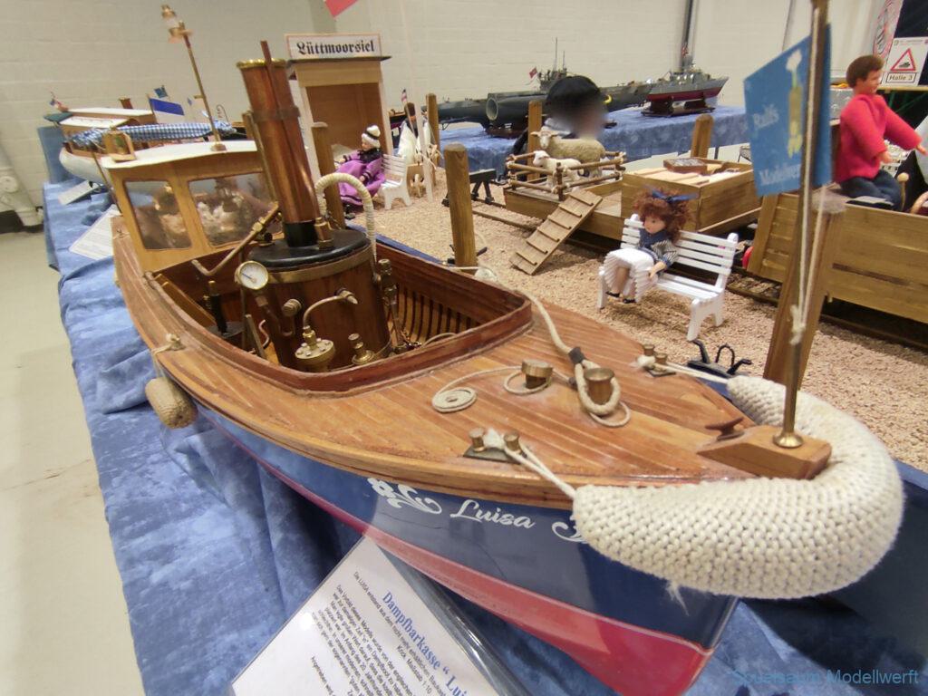 Ich habe wie immer mit dem SMC Elmshorn ausgestellt, dieses Jahr an beide Tagen. Prominent an vorderster Front, wobei das in der Halle doch relativ egal ist. Da wir viele große Boote im Verein haben und der Platz natürlich begrenzt ist blieben ca. 2,50m für mich, aber wie man sehen kann schaff ich es ohne Probleme auch diese ‚vollzumüllen‘. Bei mir gibt’s eben nicht nur die Boote sondern auch die Geschichte dazu (und ich hatte nochmehr dabei ;0) ). An Bootshaus hatte sich gegenüber Rostock im November nichts wesentliches geändernt, nur der Release-Haken war in der Montage etwas modifiziert, so daß nur eine Vorführung nicht geklappt hat (von unzähligen). Auch die Funktion der Winde wurde angefragt und vorgeführt. Das laufende Radar des Tyne, noch separat auf dem Tisch, habe ich nur mindestens 6 Mal auseinander genommen um den Getriebemotor zu zeigen. Da werde ich wohl noch ein zweites Radar bauen, nur für Ausstellungen (kein Hexenwerk, einfach nur Getriebemotor und Spannungsregler).