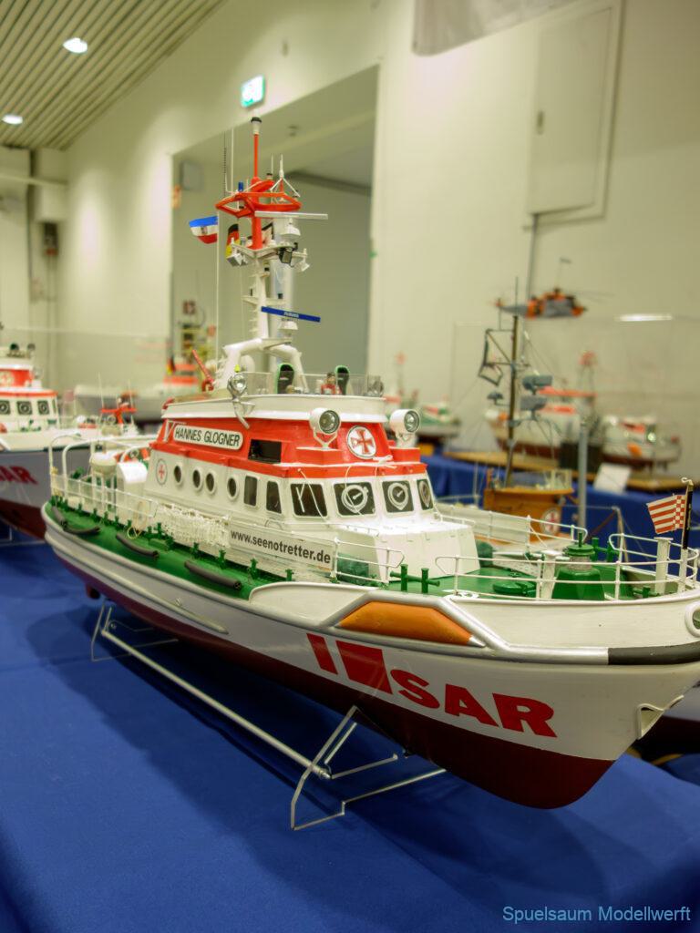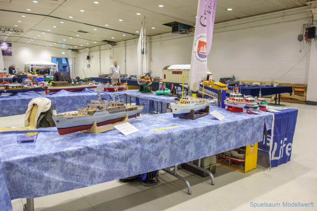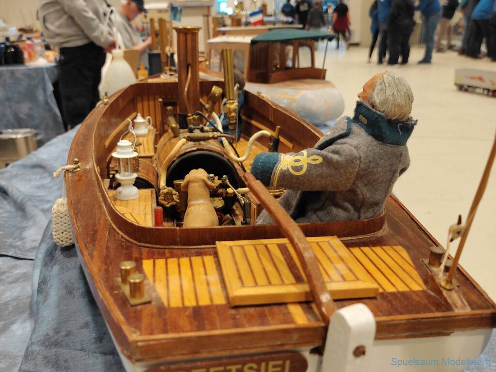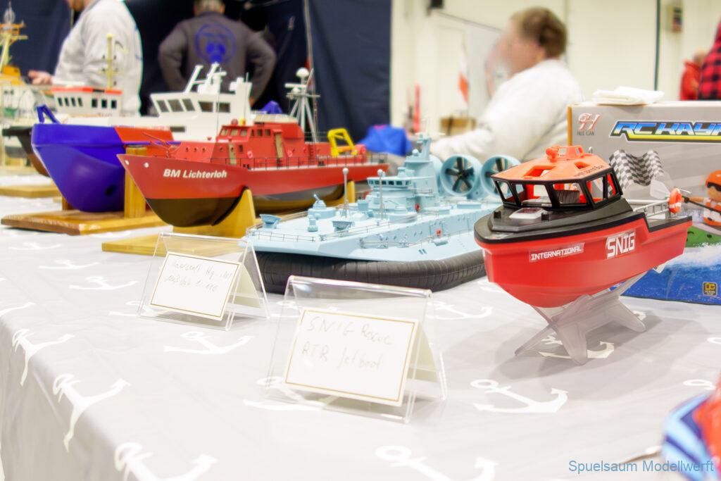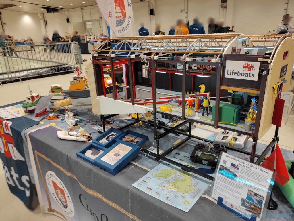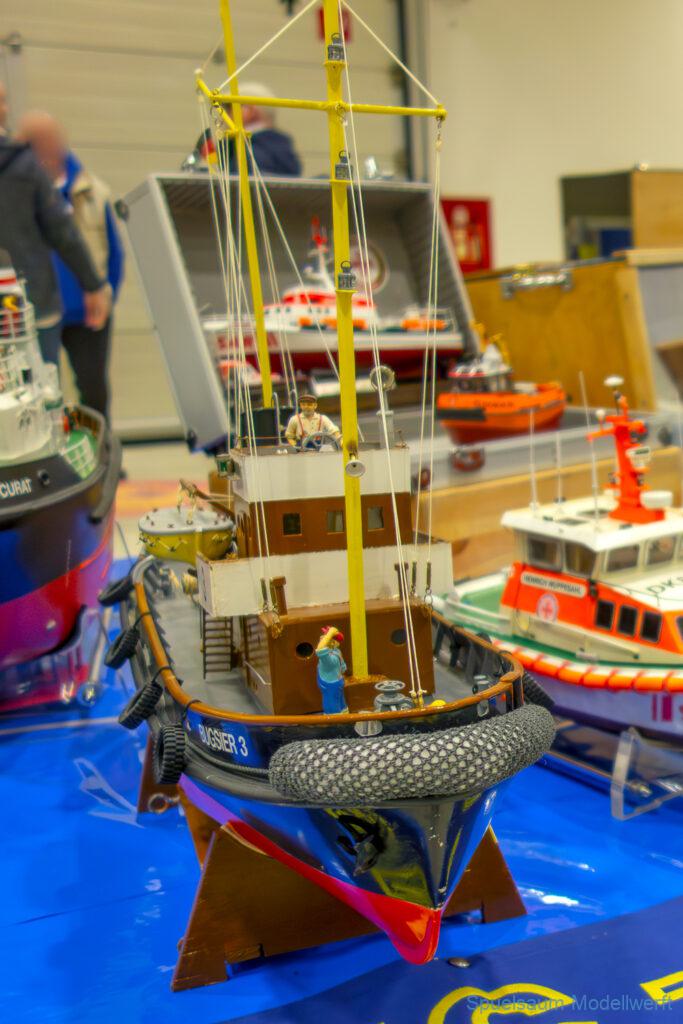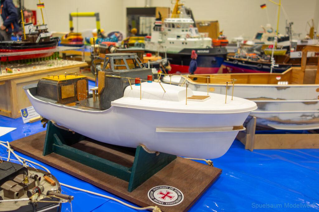 Nicht nur die Stimmung an unserem Stand war gut (und die Versorgung mit Brötchen, Würstchen und Kuchen – danke!), auch untereinander ging es locker zu. Viele Leute kennt man ja schon von anderen Veranstaltungen. Es lässt sich noch das eine oder andere lernen (immer wieder). Über Interesse an den Schiffen konnten wir uns nicht beklagen. Ab und an gingen die Gespräche zumindest bei mir dann auch mal auf englisch weiter. Mit etlichen Modellbaufreunden und Bekannten konnte aktueller Flurfunk der Seenotretter (nicht nur der DGzRS) ausgetauscht werden und über aktuelle und geplante Modelle wird geredet. Faszinierend finde ich immer wieder das Interesse and der WILMA SIKORSKI, die ja nicht das einzige dieses Modelltyps auf der Messe ist. Man merkt, das SRB von Graupner (jetzt PEBA) wird immer noch viel gebaut und liegt in vielen Kellen.