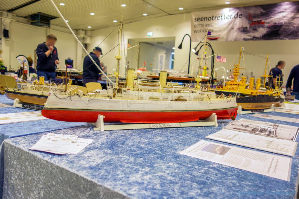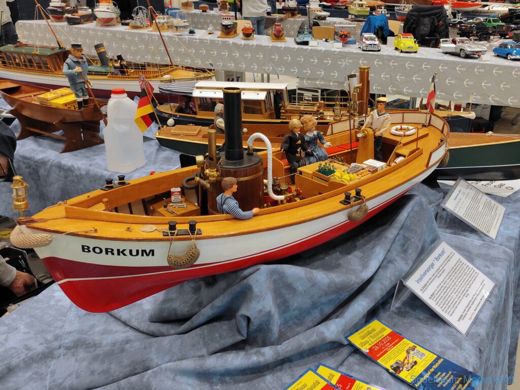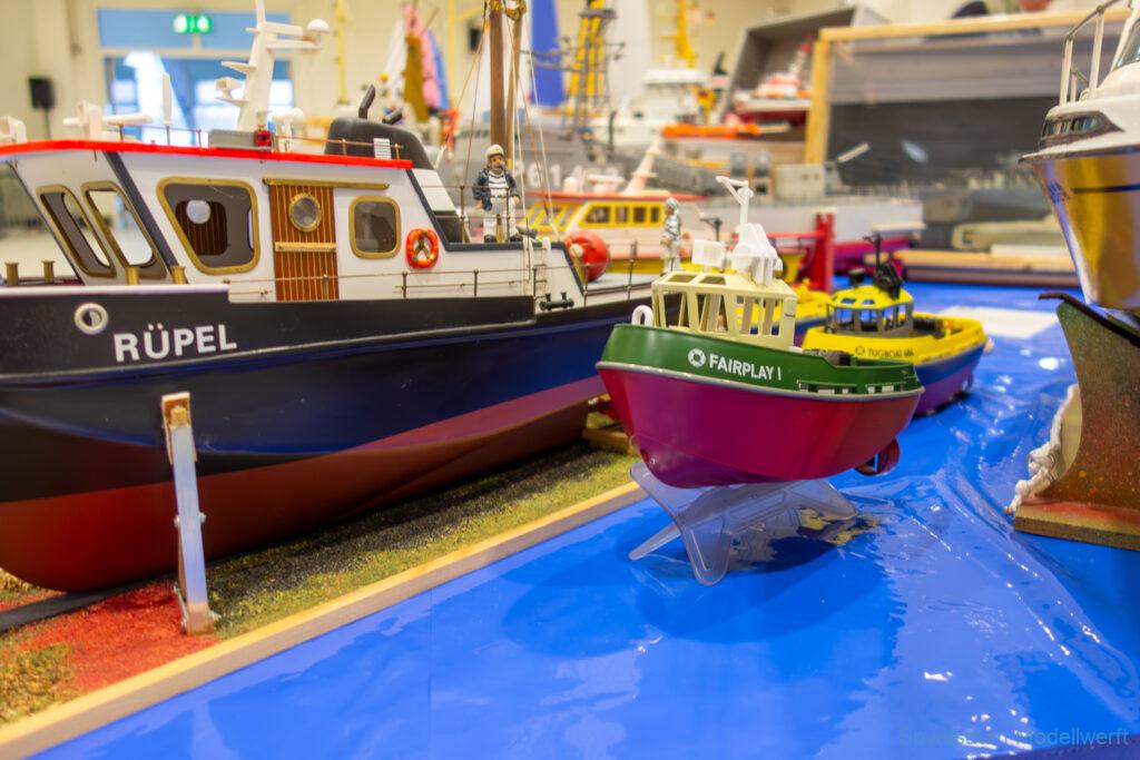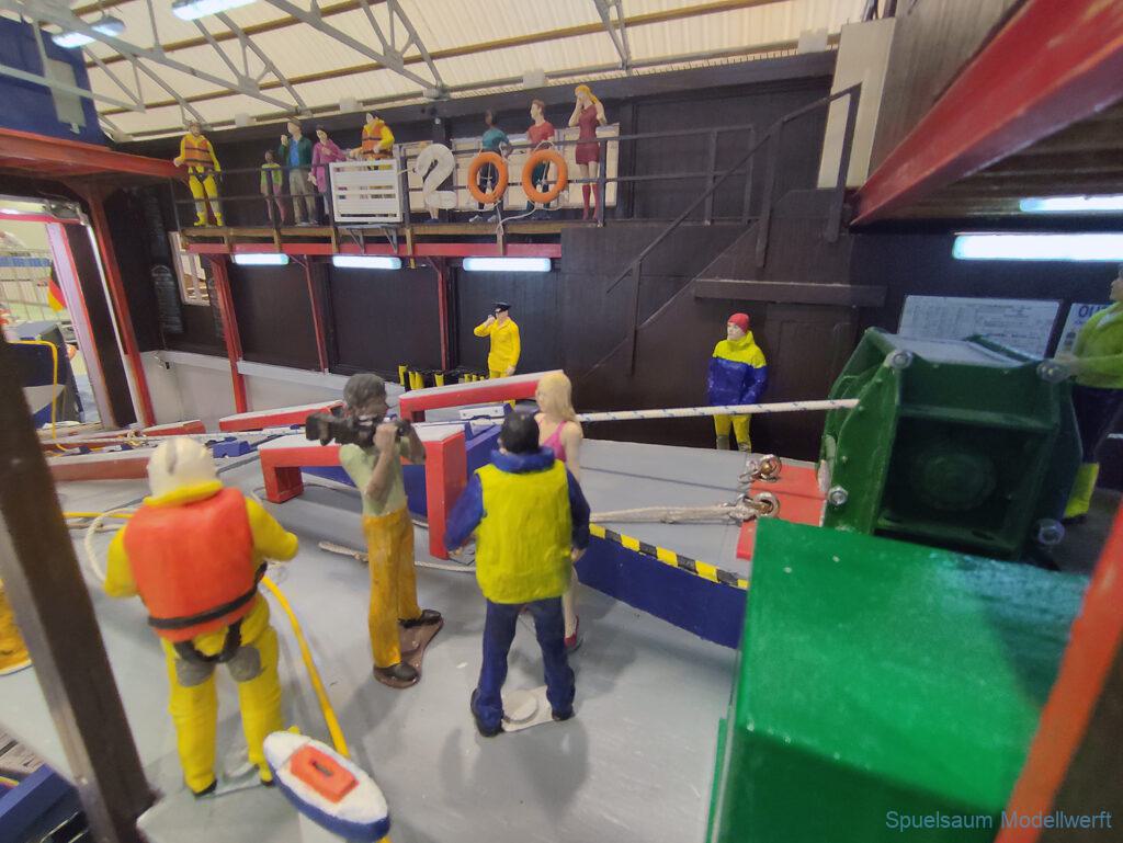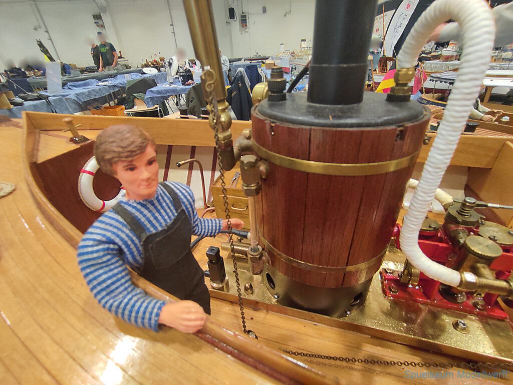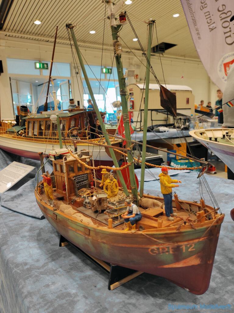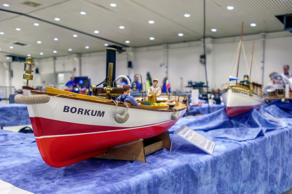 Nicht nur die Stimmung an unserem Stand war gut (und die Versorgung mit Brötchen, Würstchen und Kuchen – danke!), auch untereinander ging es locker zu. Viele Leute kennt man ja schon von anderen Veranstaltungen. Es lässt sich noch das eine oder andere lernen (immer wieder). Über Interesse an den Schiffen konnten wir uns nicht beklagen. Ab und an gingen die Gespräche zumindest bei mir dann auch mal auf englisch weiter. Mit etlichen Modellbaufreunden und Bekannten konnte aktueller Flurfunk der Seenotretter (nicht nur der DGzRS) ausgetauscht werden und über aktuelle und geplante Modelle wird geredet. Faszinierend finde ich immer wieder das Interesse and der WILMA SIKORSKI, die ja nicht das einzige dieses Modelltyps auf der Messe ist. Man merkt, das SRB von Graupner (jetzt PEBA) wird immer noch viel gebaut und liegt in vielen Kellen.