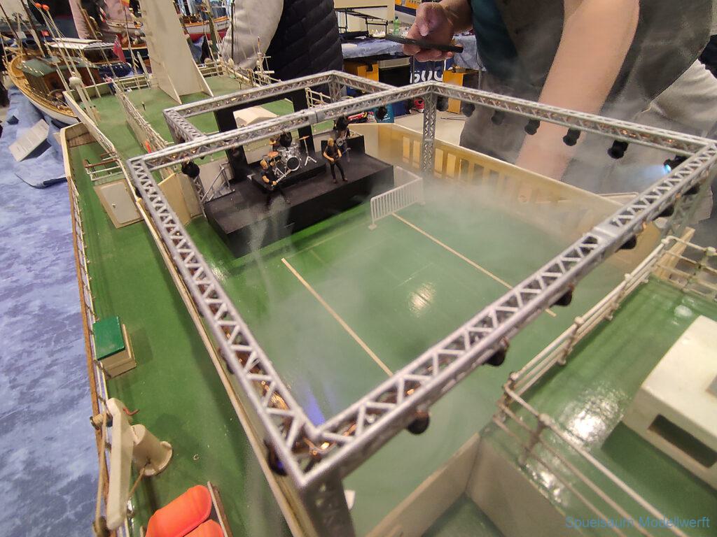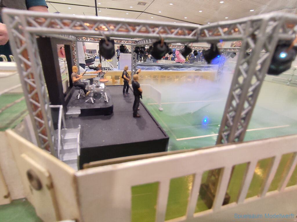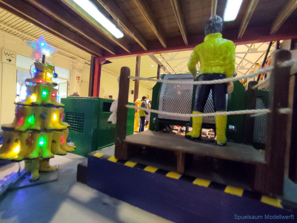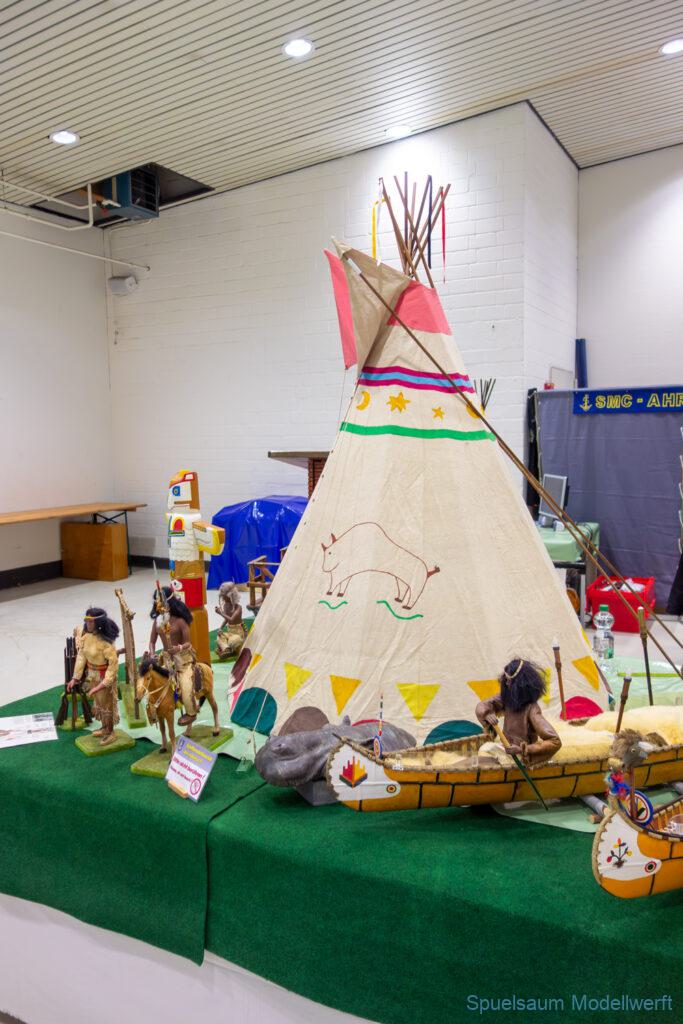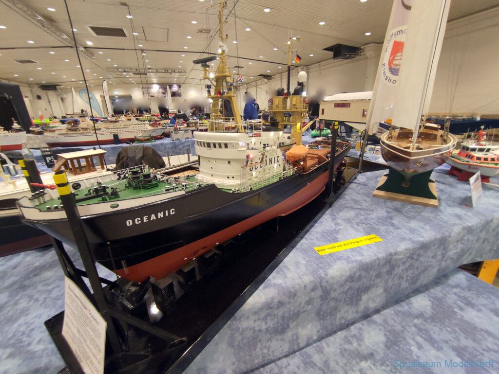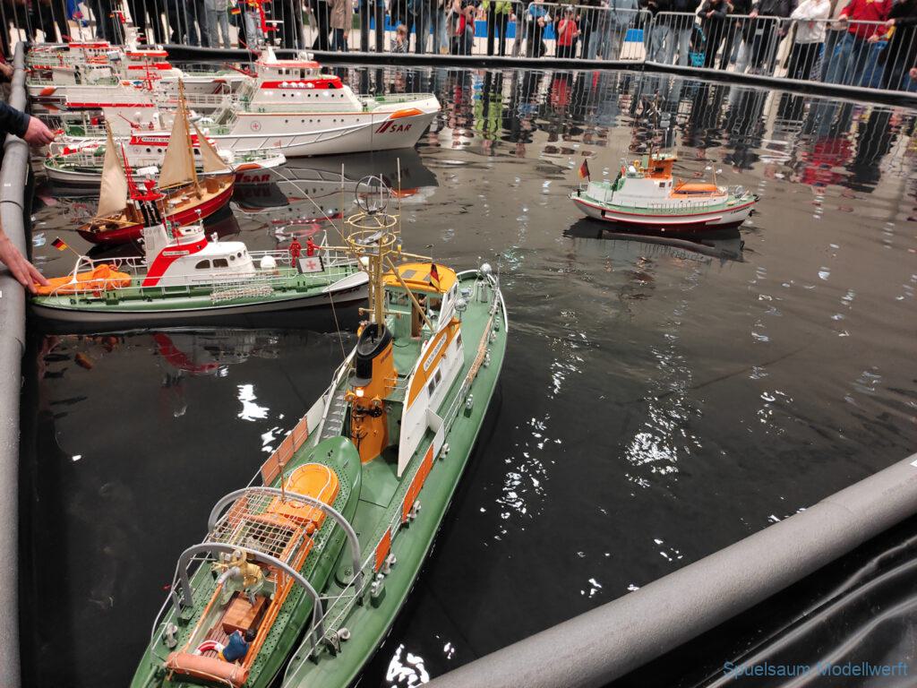 Modellbau Schleswig-Holstein wure relativ kurzfristig in Modellbau Neumünster umbenannt. Der Rest blieb gleich, Holstenhallen und überwiegend Modellbahnen. Nach dem letztjährigen Gartenpool als Fahrbecken haben die Störpiraten zusammen mit der IG für DGzRS Einheiten (soweit ich das verstanden habe) ein ca. 8x8m großes Becken bereitgestellt. Bodennah, damit war nicht nur weniger Wasser nötig auch die Kleinen konnten ohne Probleme sehen. Natürlich dominierten die Eisenbahnanlagen für uns blieb wieder eine Halle übrig, die Anfangs etwas luftig gefüllt aussah, der Platz um das Becken war bei Vorführungen (DGzRS und Indianer … ja, die heißen noch so) schnell gut gefült.