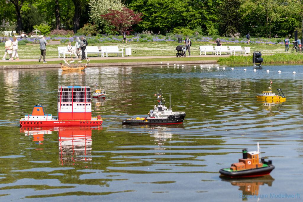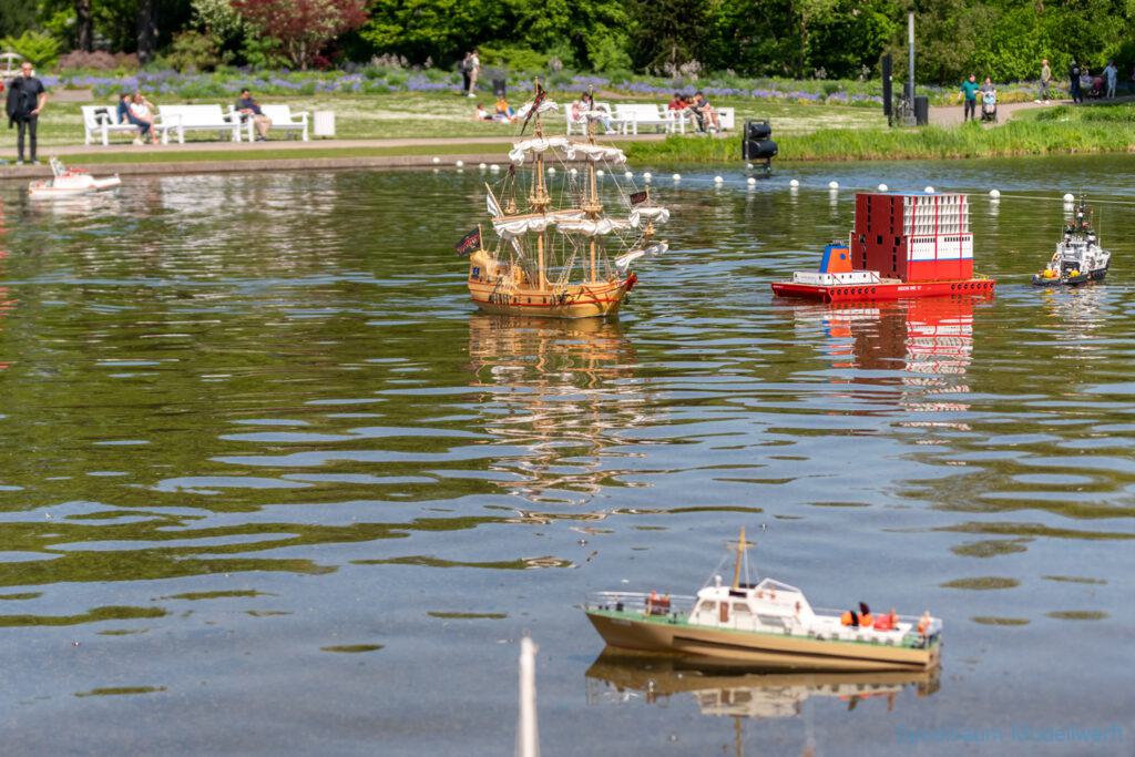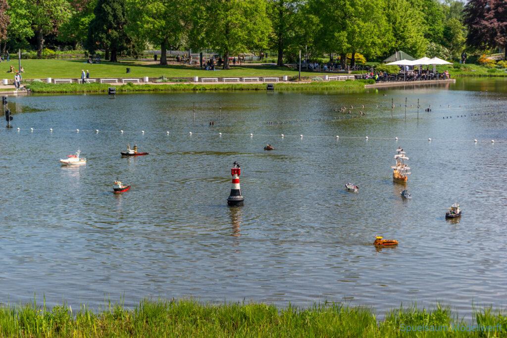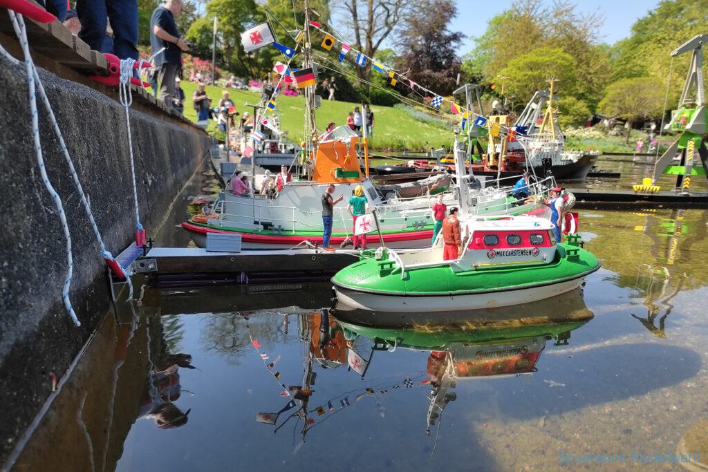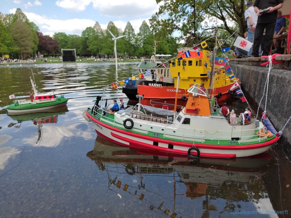 Ein schönes Plätzchen um bekannte aber auch gerne neue Gesichter zu treffen. Zuschauer waren den Tag über sehr viele da. Der Park war einfach nur voll. Da das Fahrgelände aber mit einem Seil abgetrennt war und nur einen offiziellen Eingang hatte kamen immer nur wenige Besucher auch direkt zu den Schiffen. Anders wäre das auf dem kleinen Uferstück aber auch nicht zu bewerkstelligen gewesen.