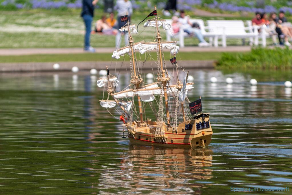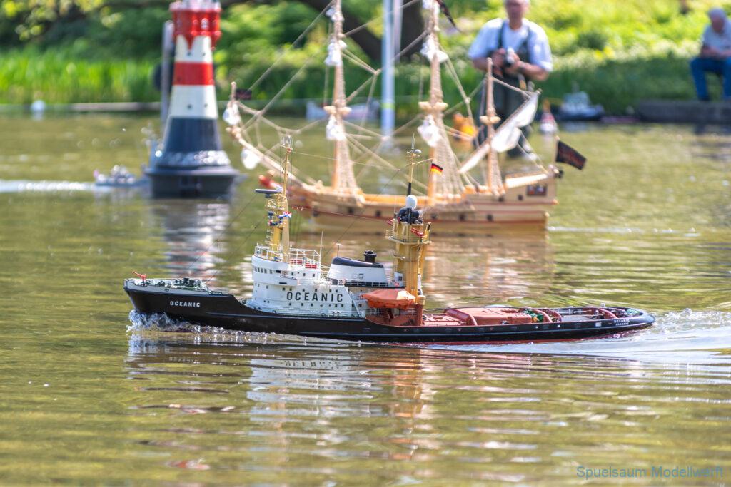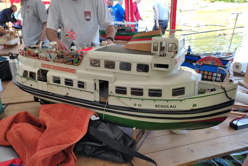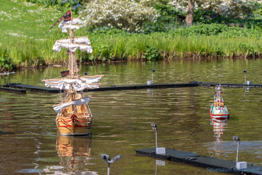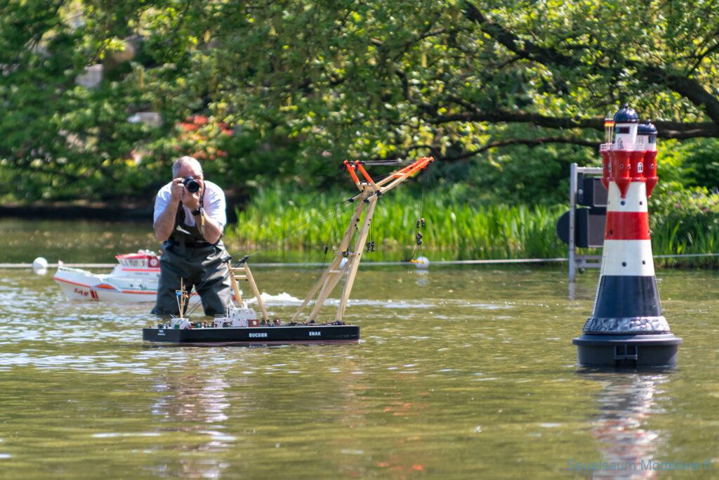 Ein schönes Plätzchen um bekannte aber auch gerne neue Gesichter zu treffen. Zuschauer waren den Tag über sehr viele da. Der Park war einfach nur voll. Da das Fahrgelände aber mit einem Seil abgetrennt war und nur einen offiziellen Eingang hatte kamen immer nur wenige Besucher auch direkt zu den Schiffen. Anders wäre das auf dem kleinen Uferstück aber auch nicht zu bewerkstelligen gewesen.