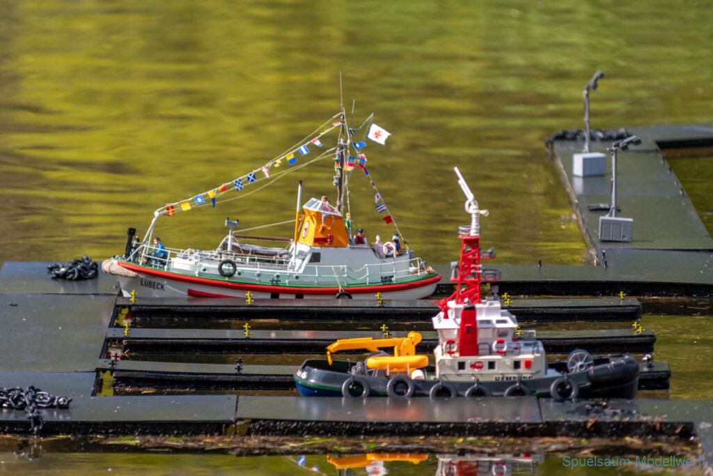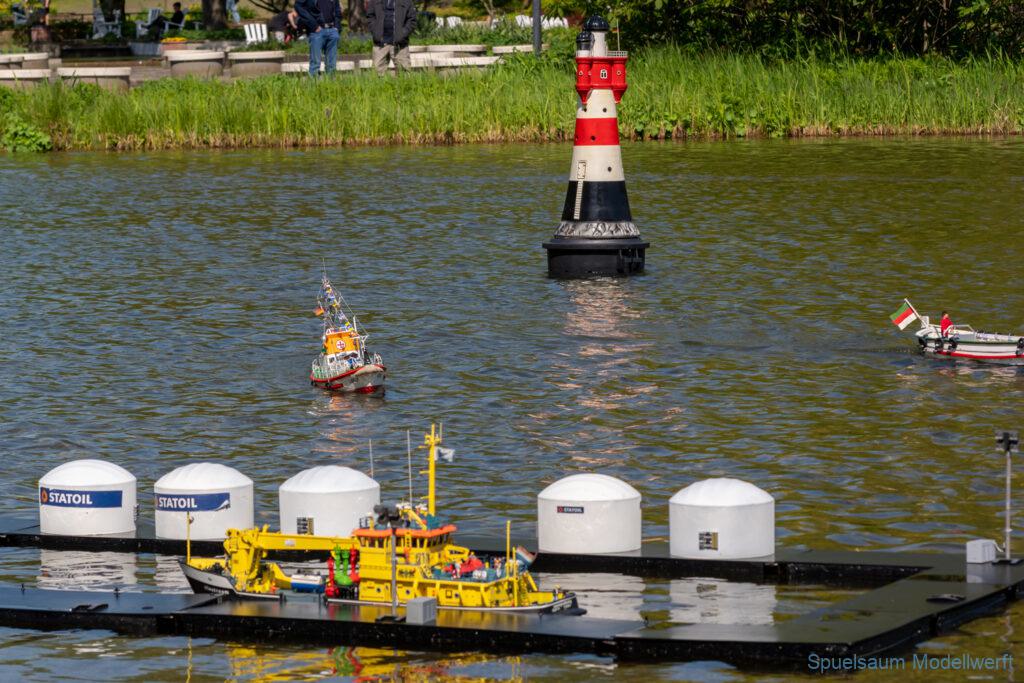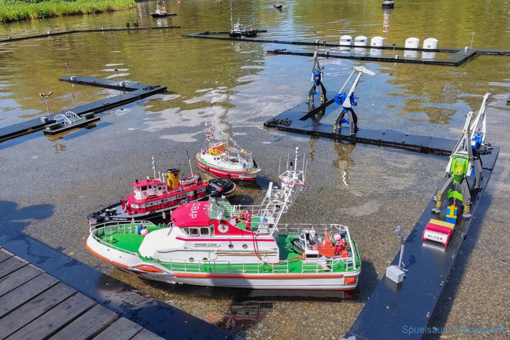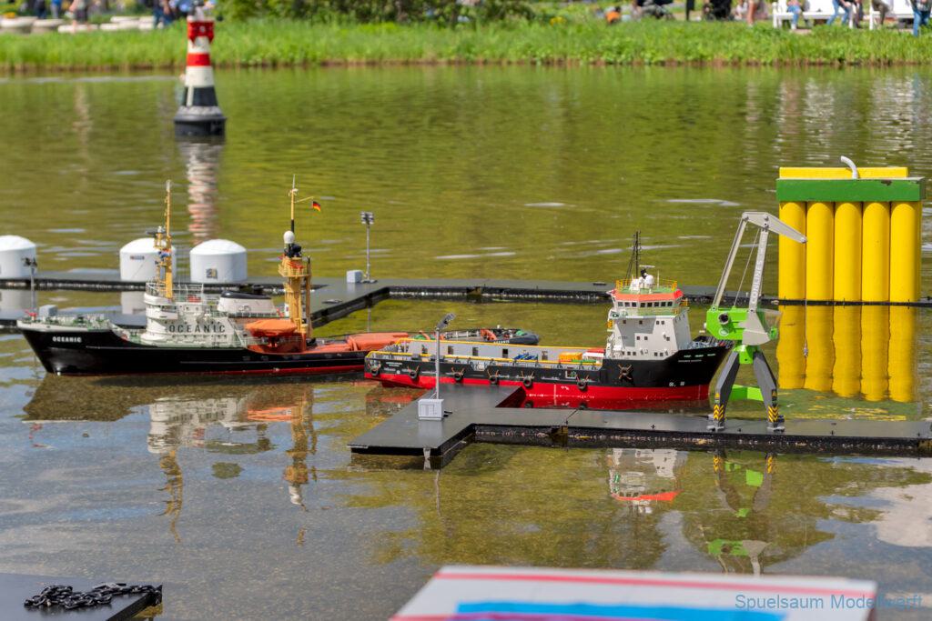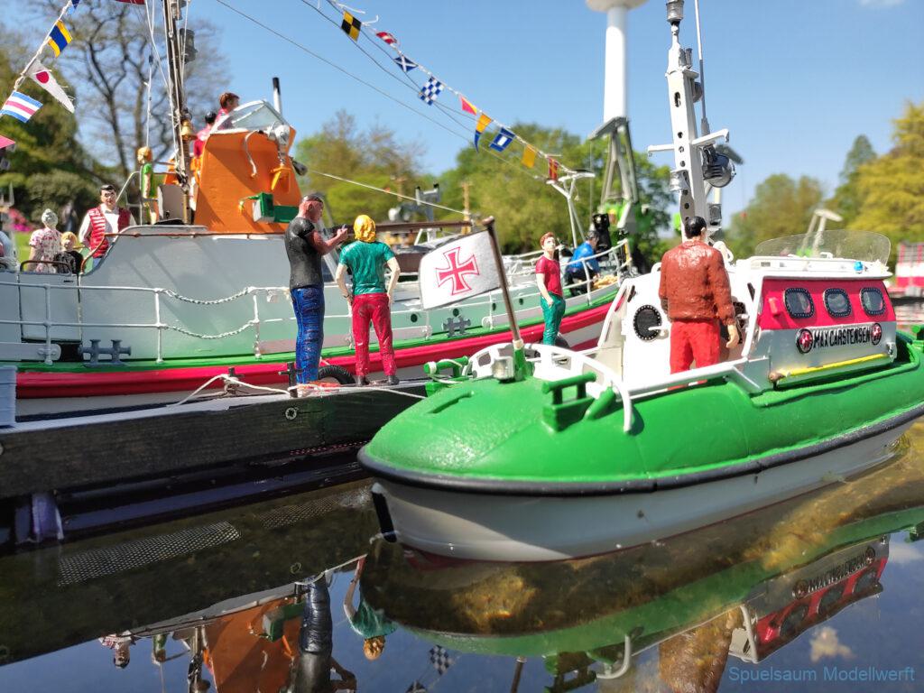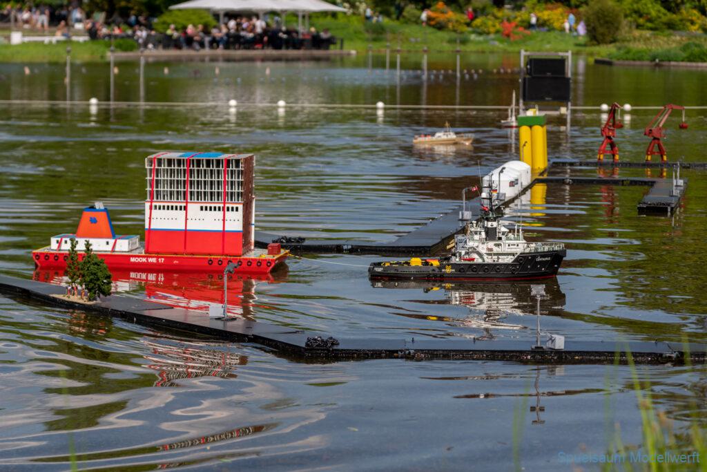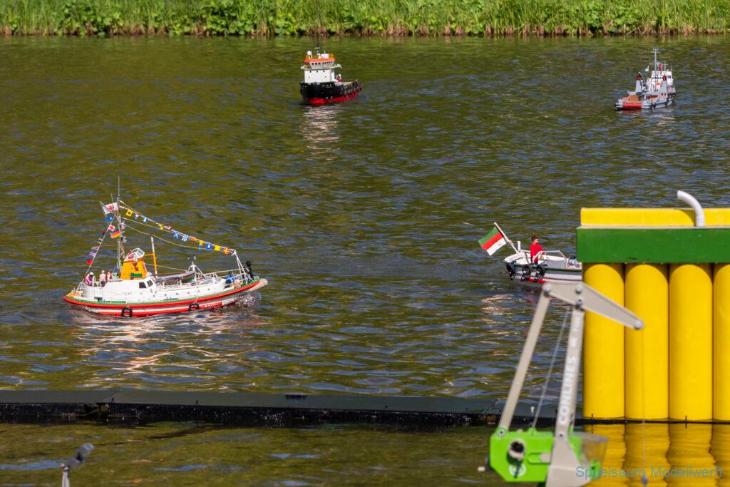 Eine große Hafenanlage war aufgebaut und ich habe mir in der Woche vorher extra einen kleinen Schwimmsteg gebastelt um meine Boote den Tag über im Wasser zu lassen.