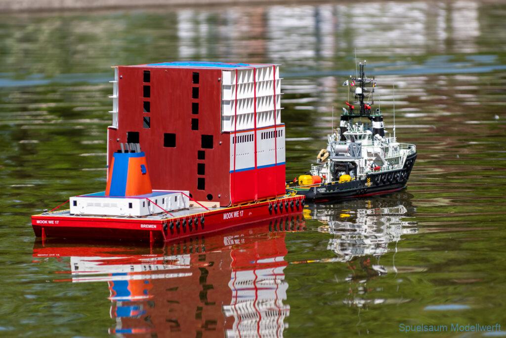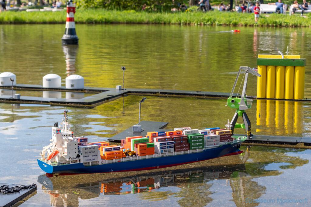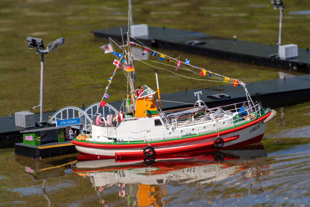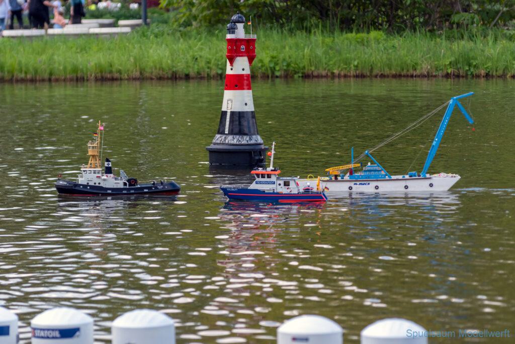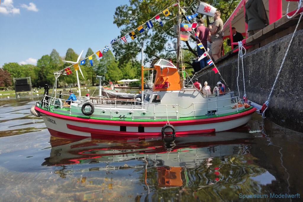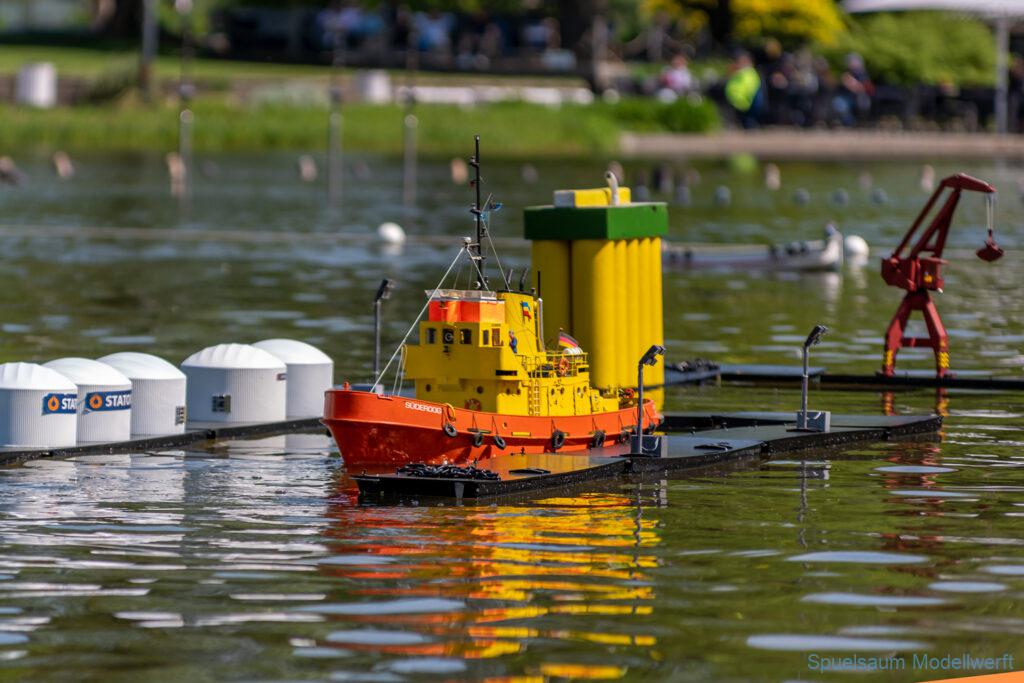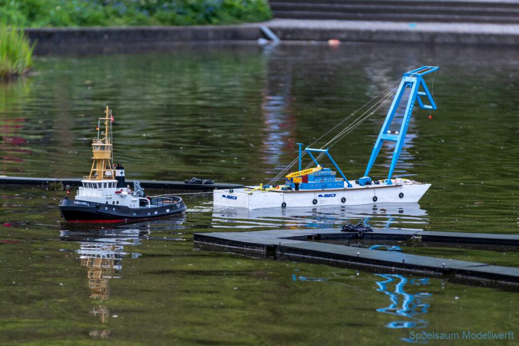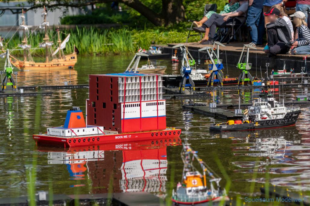 Eine große Hafenanlage war aufgebaut und ich habe mir in der Woche vorher extra einen kleinen Schwimmsteg gebastelt um meine Boote den Tag über im Wasser zu lassen.
