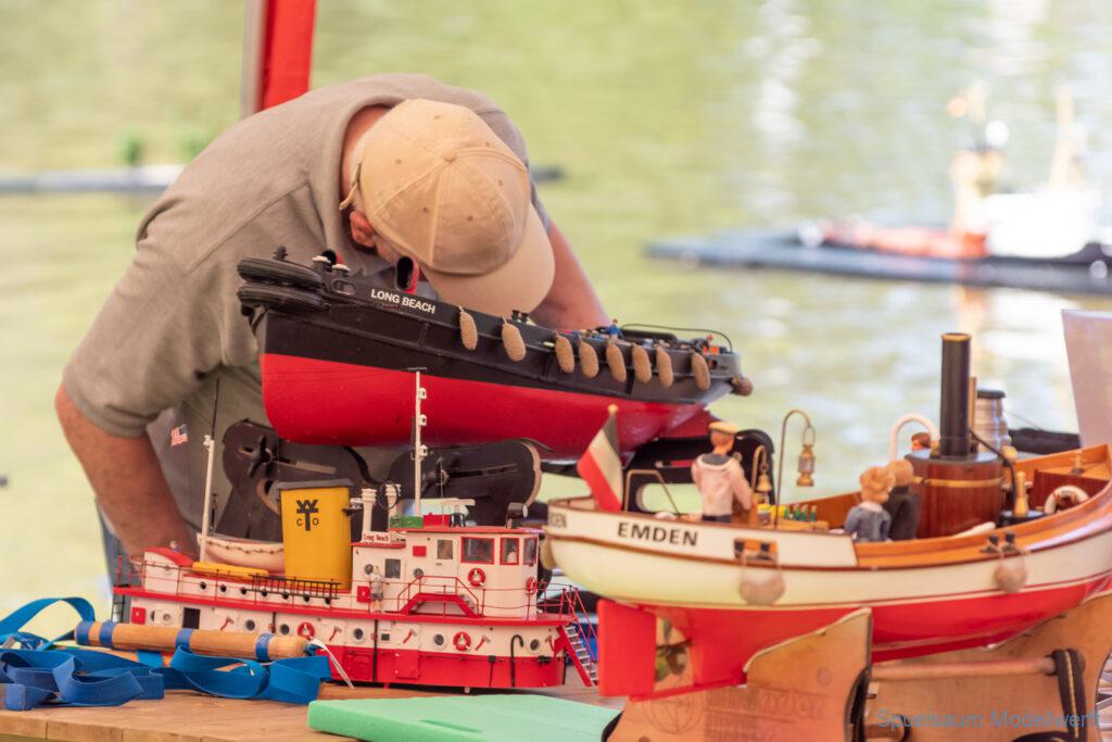 Für die Schiffe waren Tischinseln aufgestellt, so konnte man auch mal auf Details schauen oder an offenen Booten diskutieren oder Probleme angehen.