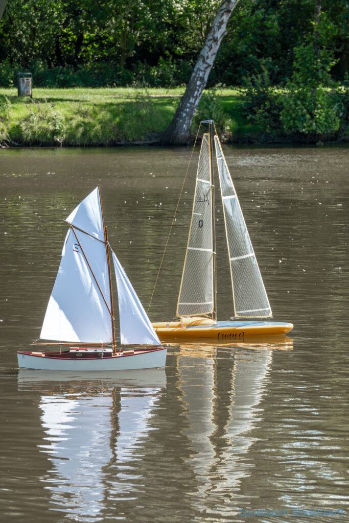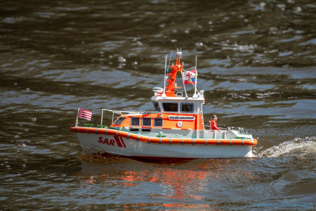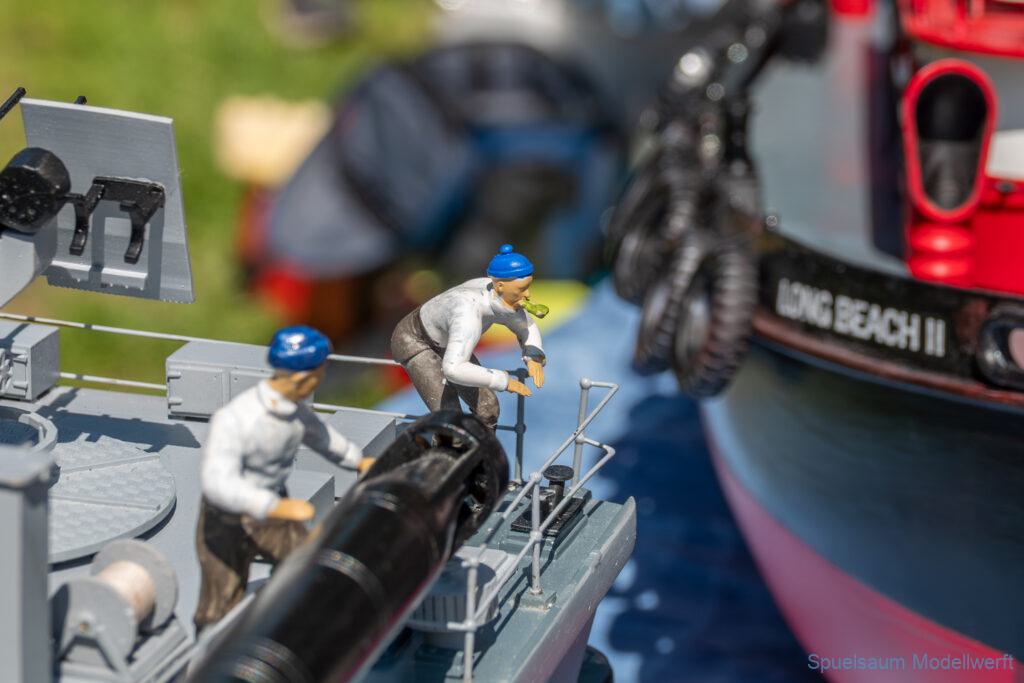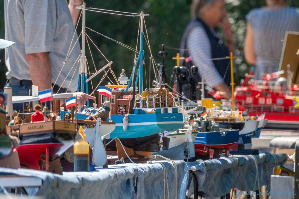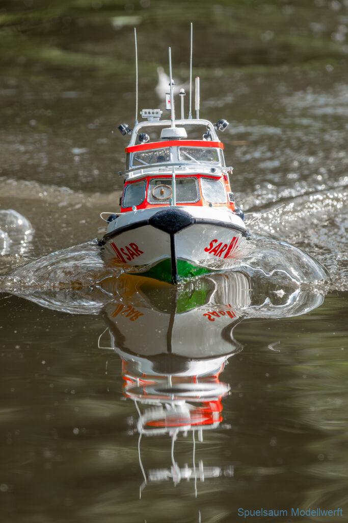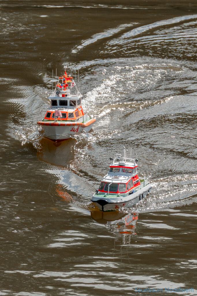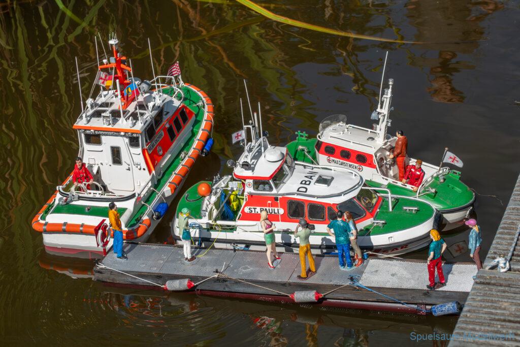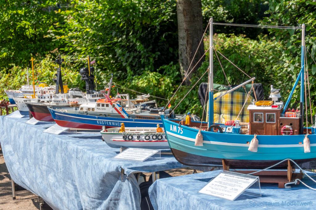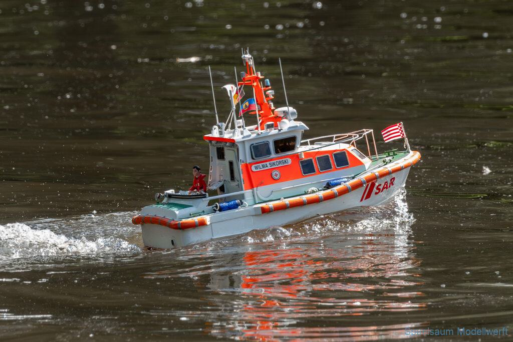 Bei dem Wetter war das Restaurant am See gut besucht, die dazu gehörigen Tische haben leider den guten Schattenplatz unter den Bäumen mit eingenommen. Hier und da konnte man sich aber unterstellen. Neben dem SMC Elmshorn waren auch noch Gäste vom SMC Hamburg den Modellschippers Neumünster und einige mehr gekommen. Es kamen so einige interessante Schiffe zusammen. Ich persönlich habe Besuch bekommen von der anderen Elbseite, die Glückstadt-Wischhafen Fähre ist nicht allzu weit weg. So wurde dann viel mit der WILMA SIKORSKI und der ST. Pauli gefahren, so daß am Ende tatsächlich beide ihre Akkus mal leergefahren hatten. Die Stimmung war prima, bis auf einige Radfahrer die meinten trotz Absperrung durchfahren zu müssen – willkommen in Deutschland. Dank Sonnenöl gings kurz nach 17 Uhr zurück nach Hause. ST. PAULI bringt einfach Spaß und auch die WILMA mit Gyro fuhr in diesem Wasser perfekt.