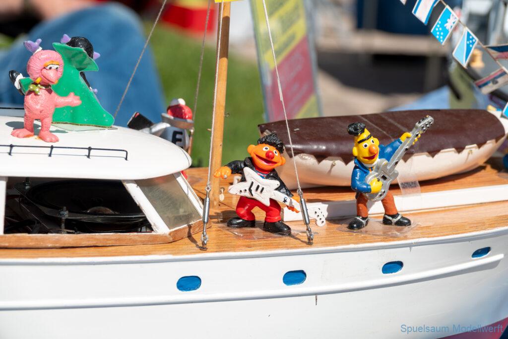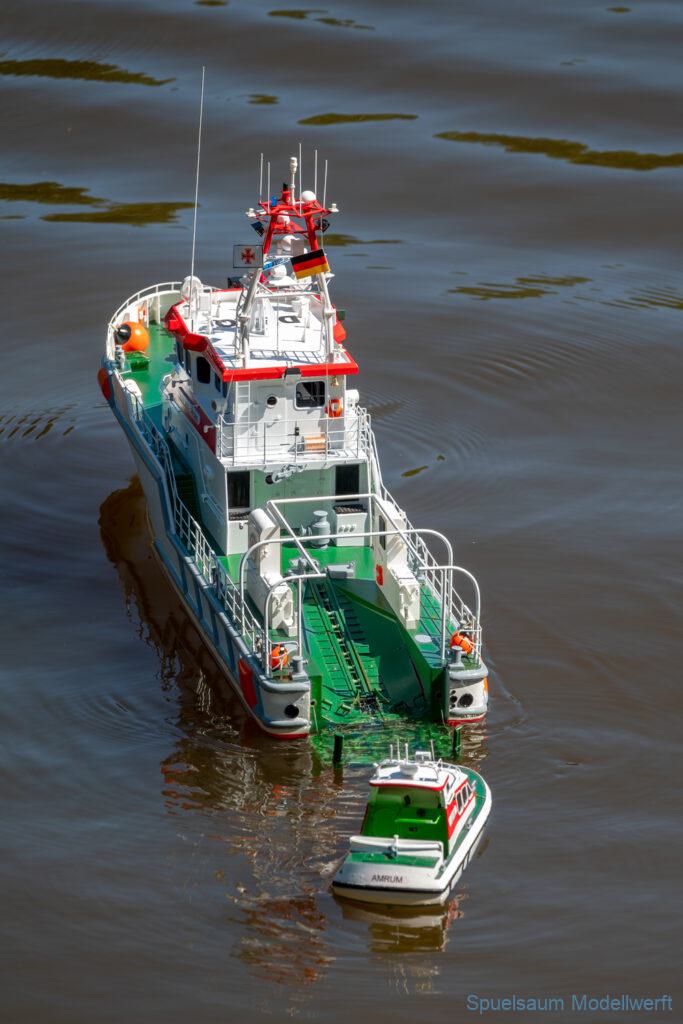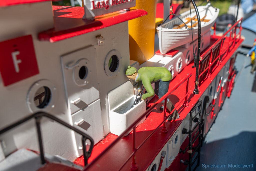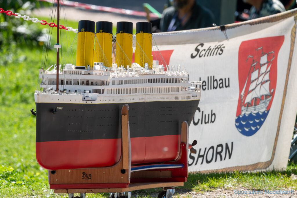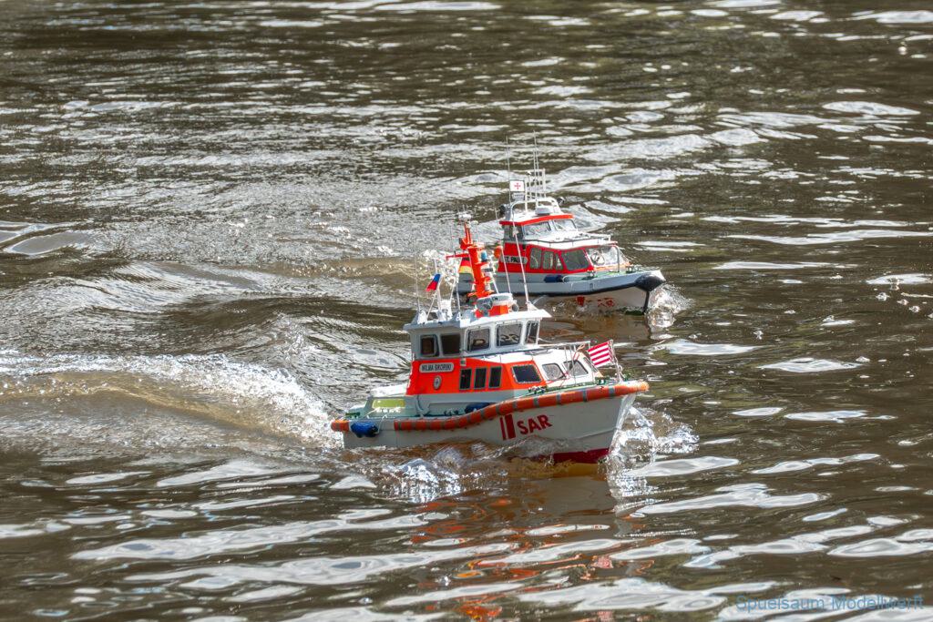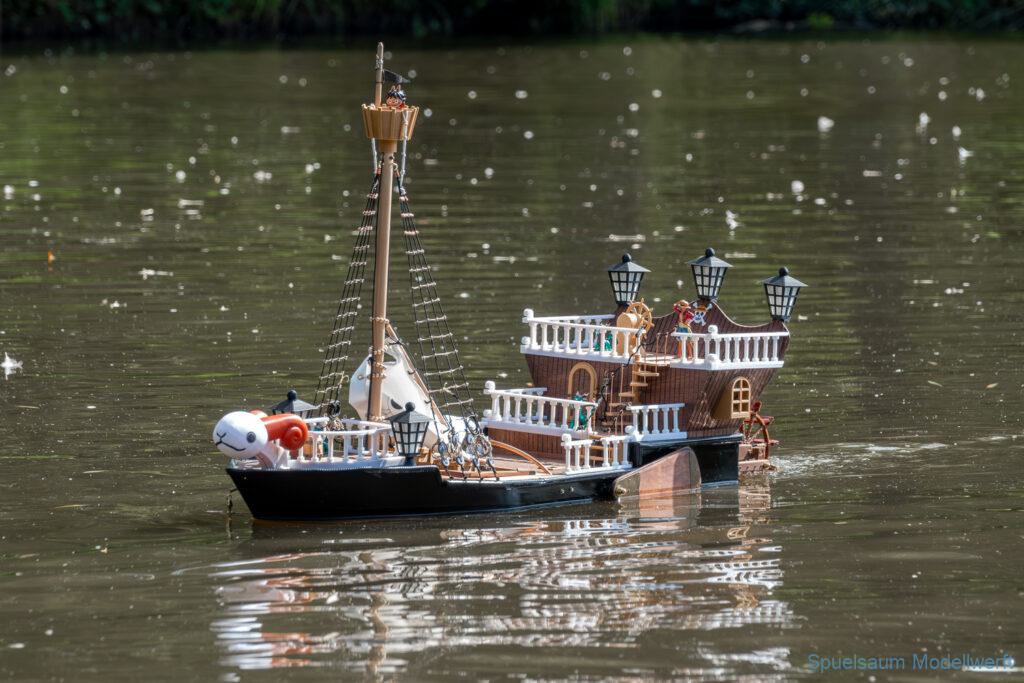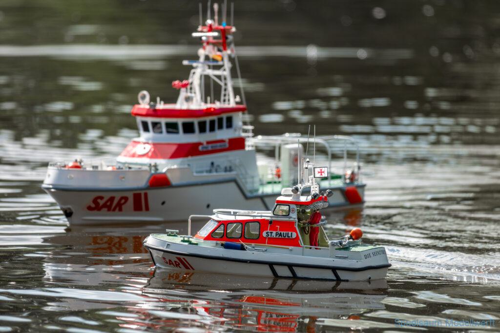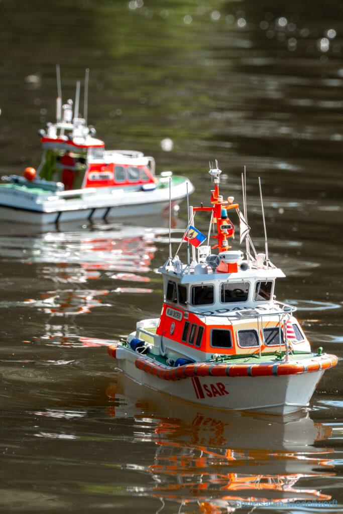 Bei dem Wetter war das Restaurant am See gut besucht, die dazu gehörigen Tische haben leider den guten Schattenplatz unter den Bäumen mit eingenommen. Hier und da konnte man sich aber unterstellen. Neben dem SMC Elmshorn waren auch noch Gäste vom SMC Hamburg den Modellschippers Neumünster und einige mehr gekommen. Es kamen so einige interessante Schiffe zusammen. Ich persönlich habe Besuch bekommen von der anderen Elbseite, die Glückstadt-Wischhafen Fähre ist nicht allzu weit weg. So wurde dann viel mit der WILMA SIKORSKI und der ST. Pauli gefahren, so daß am Ende tatsächlich beide ihre Akkus mal leergefahren hatten. Die Stimmung war prima, bis auf einige Radfahrer die meinten trotz Absperrung durchfahren zu müssen – willkommen in Deutschland. Dank Sonnenöl gings kurz nach 17 Uhr zurück nach Hause. ST. PAULI bringt einfach Spaß und auch die WILMA mit Gyro fuhr in diesem Wasser perfekt.