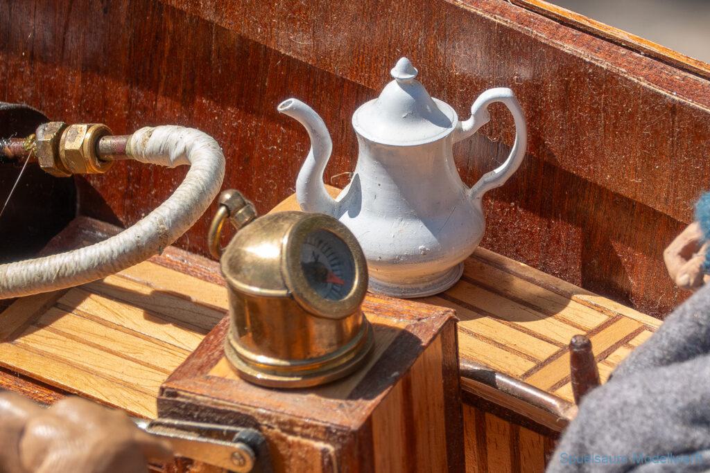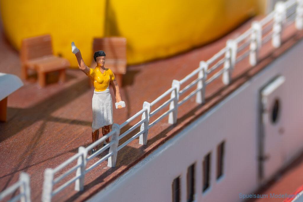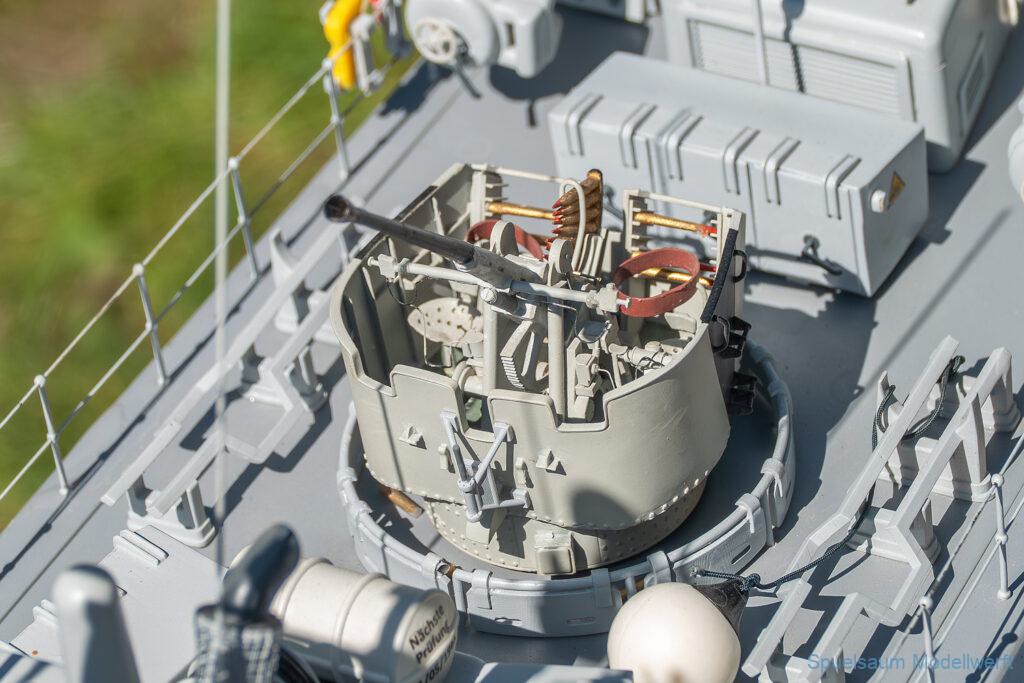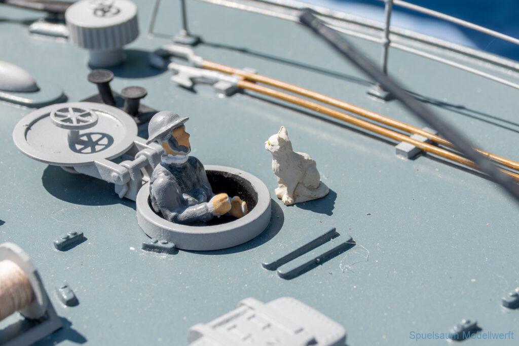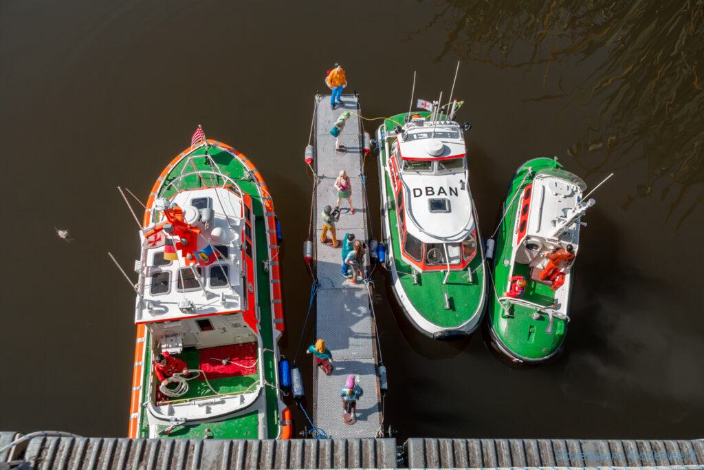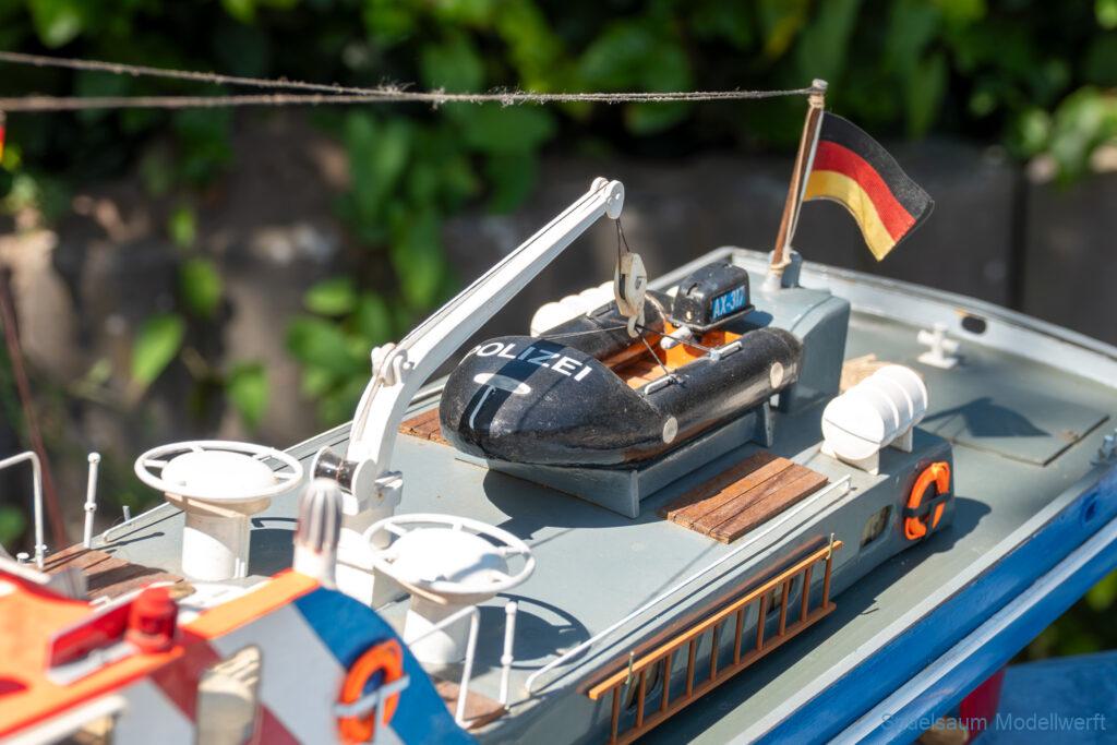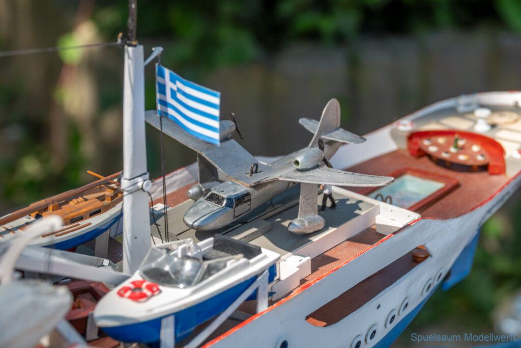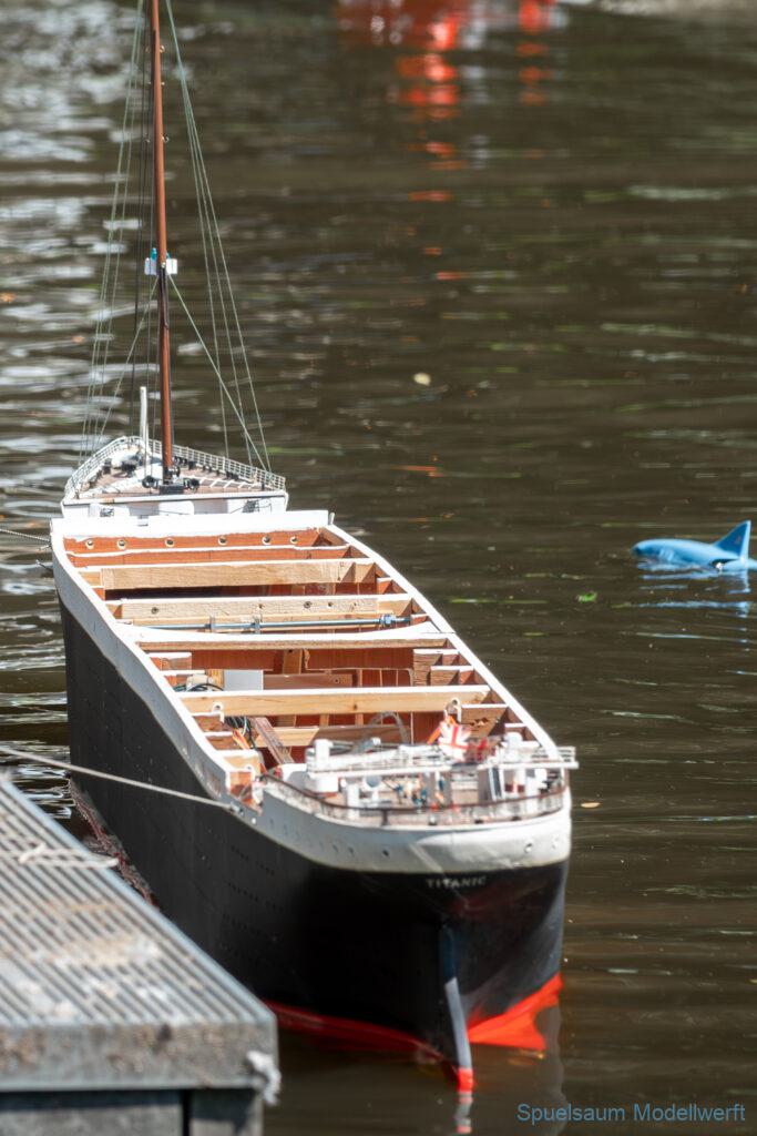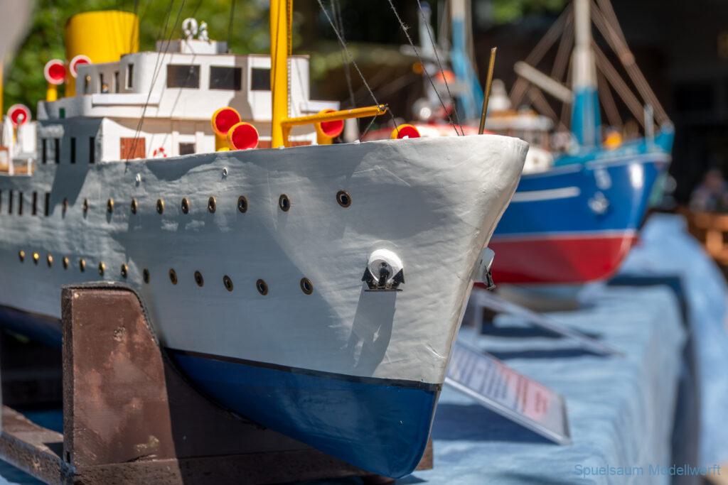 Bei dem Wetter war das Restaurant am See gut besucht, die dazu gehörigen Tische haben leider den guten Schattenplatz unter den Bäumen mit eingenommen. Hier und da konnte man sich aber unterstellen. Neben dem SMC Elmshorn waren auch noch Gäste vom SMC Hamburg den Modellschippers Neumünster und einige mehr gekommen. Es kamen so einige interessante Schiffe zusammen. Ich persönlich habe Besuch bekommen von der anderen Elbseite, die Glückstadt-Wischhafen Fähre ist nicht allzu weit weg. So wurde dann viel mit der WILMA SIKORSKI und der ST. Pauli gefahren, so daß am Ende tatsächlich beide ihre Akkus mal leergefahren hatten. Die Stimmung war prima, bis auf einige Radfahrer die meinten trotz Absperrung durchfahren zu müssen – willkommen in Deutschland. Dank Sonnenöl gings kurz nach 17 Uhr zurück nach Hause. ST. PAULI bringt einfach Spaß und auch die WILMA mit Gyro fuhr in diesem Wasser perfekt.