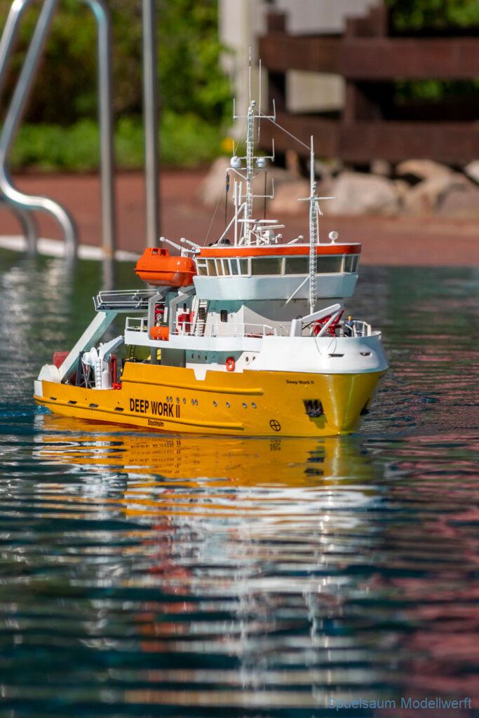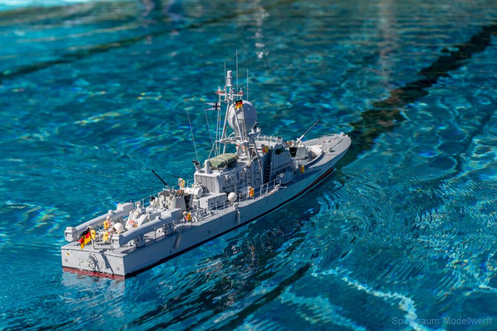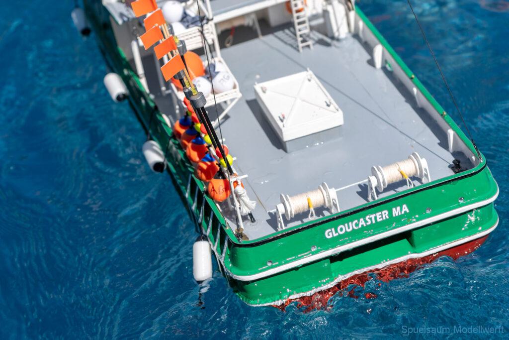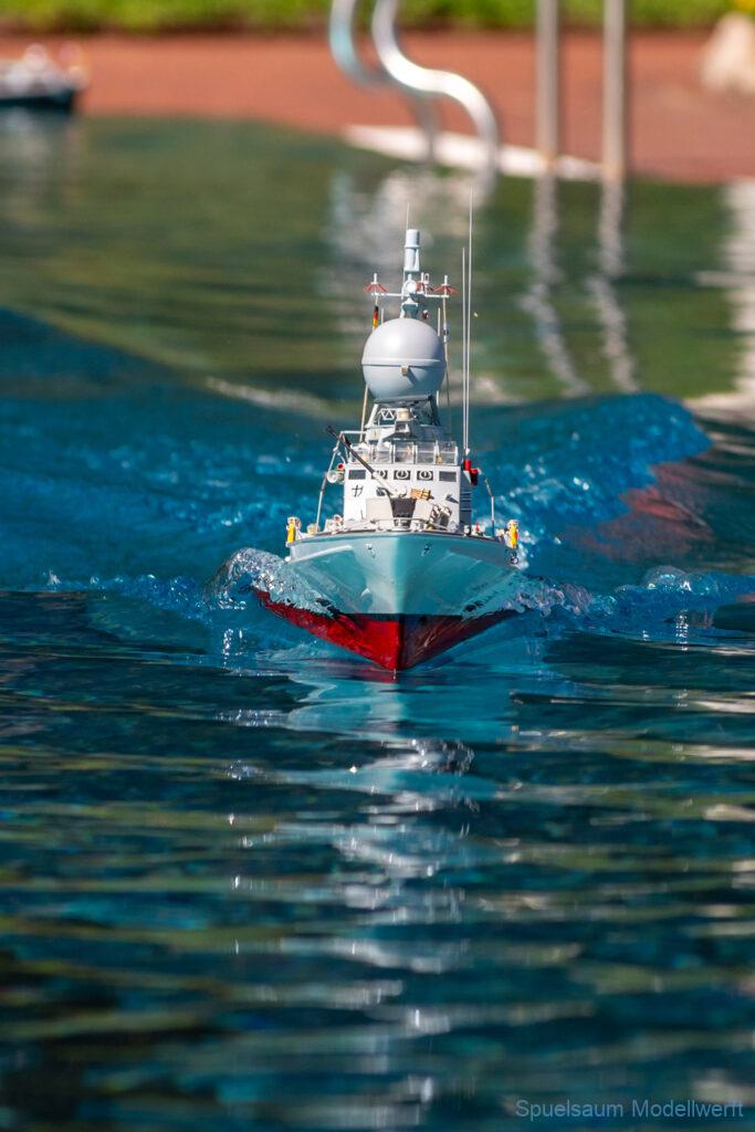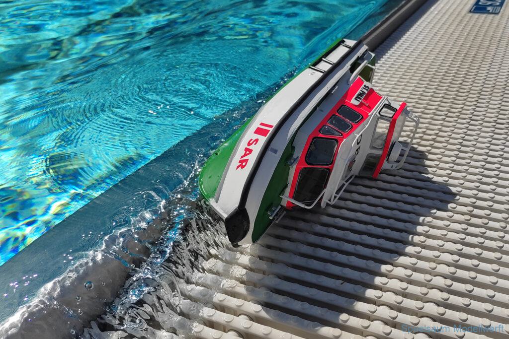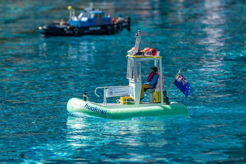 Bei mir war die kleine ST. PAULI dran zu zeigen was sie im richtigen Wasser kann. Die letzte Woche wurden die Fenster eingeklebt und am Freitag bis Abends noch die Stoßschutzleiste der Frontfender und etliche Aufkleber montiert. Das Fahrbild ist für mich perfekt, da brauche ich nichts an Motor, Schraube oder Einstellungen ändern. Die Sprayrails am Bug tun was sie sollen und die ‚Spurlage‘ ist auch deutlich besser als bei der WILMA. Ein richtiges Spaßboot. Nur mit den Fotos hat es nicht ganz so geklappt, der Autofokus war zu langsam.