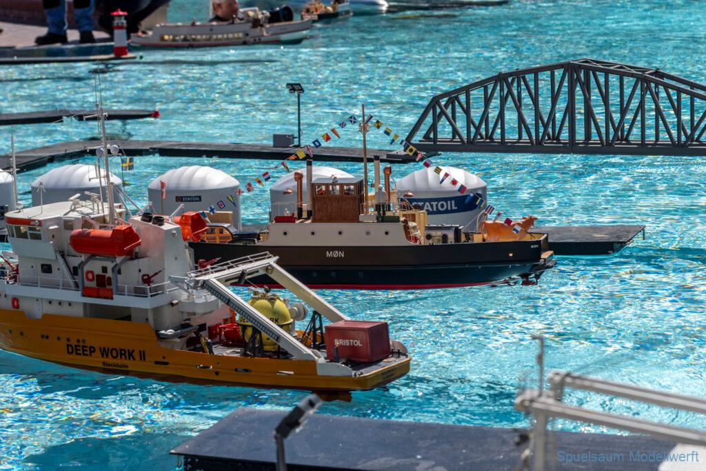 Neben der ‚Entspannung‘ heisst es natürlich wieder neue Boote anschauen, hier und da ein wenig Klönen mit bekannten und neuen Modellbaukollegen. Schiffe bestaunen deren Bau man im Forum verfolgt hat (ich sach nur die zwei ‚Moens‘ und der Kranponton). Neue Rümpfe, 3D Tricks abschauen und neben Tips sammeln auchmal einen Tip geben. Und natürlich zwischendurch mal hier und da eine Runde Fotos machen.