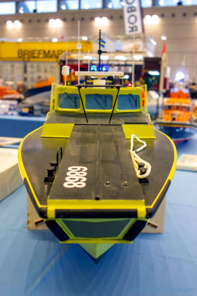 Für die Schiffsmodellbauer war ein kleines Wasserbecken von ca. 4x8m aufgestellt. Das reicht zwar nicht für Vollgas aber zum vorführen einiger Schiffe ist das genug. Der Schiffsmodellbau war vertreten durch einen gemeinsamen Offshore Stand BOS Berlin und xxx mit kleinen bis imposanten Offshore Schleppern und der, nur von einer Person gebauten riesigen Arbeitsplattform, die man ja schon auf anderen Messen sehen konnte.