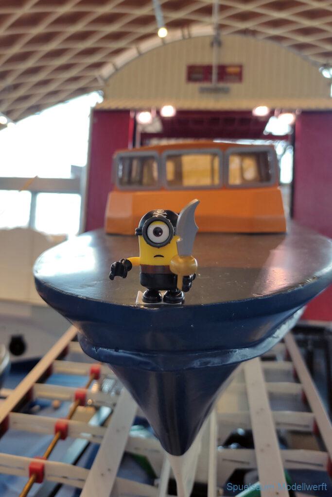 Die Hamburger haben aber auch Boote zum Zeigen, es sind verschiedene größer Modellschiffe ausgestellt, auf einer Tischinsel findet man aber das Highlicht, ein kleines, flaches Wasserbecken wo sie ihre, jährlich wachsende, 1:200 Welt aufgebaut haben. Hier fahren Schiffe die mit viel Feingefühl gebaut oder auch gedruckt worden sind. Weil mein kleine 1/87 Springer Tug zwar nicht vom Maßstab aber von der Größe dazu passte durfte ich auch als Gast etwas mitfahren.
