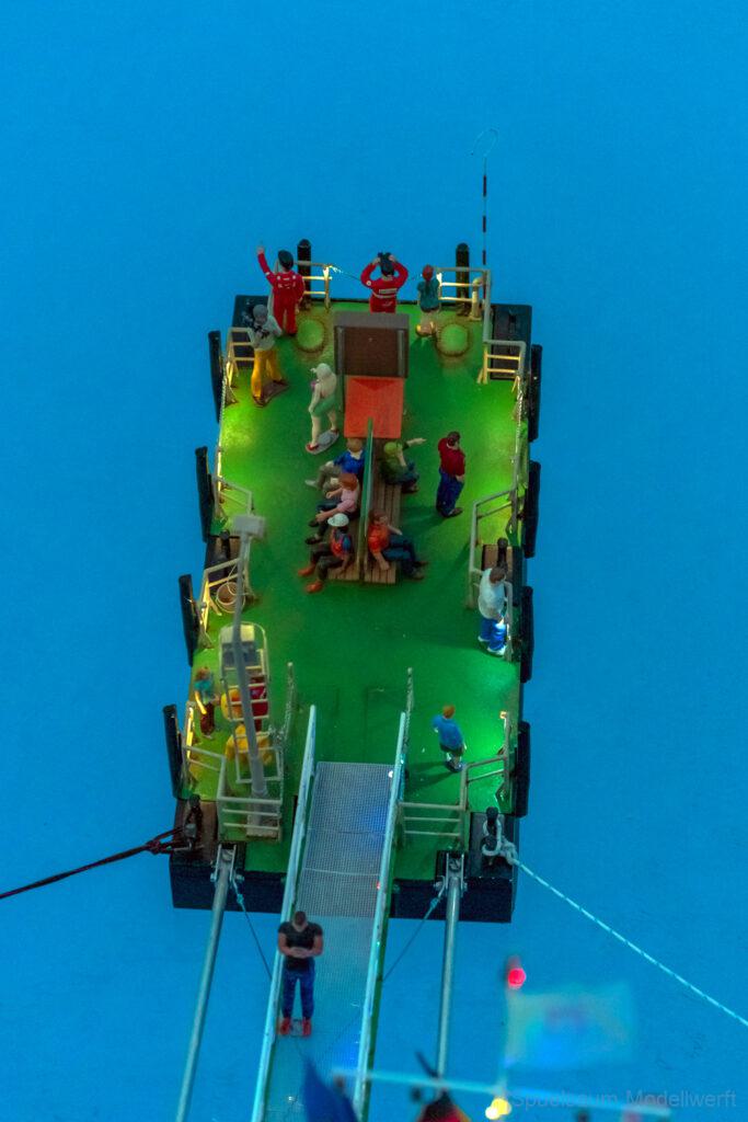 Der Ponton ist voll nutzungsfähig aber wird wahrscheinlich nie fertig. Verpackt wird mit allen Figuren, Zubehör und Befestigungsmaterial in einer 42cm hohen 60x40cm Euro-Norm-Box.