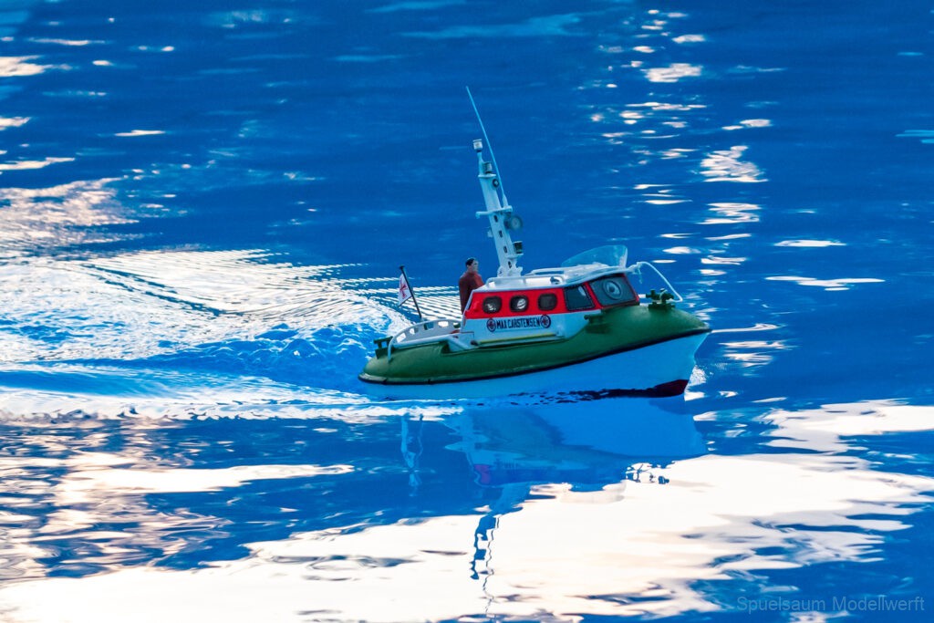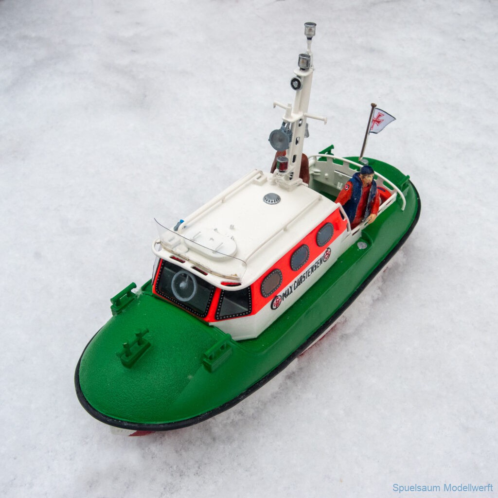 Die MAX CARSTENSEN befindet sich im fahrfertigen Zustand. Mit Wässerungshilfe, Zubehör und Fernbedienung findet sie in einem herkömmlichen Werkzeugkoffer (15cm Innenhöhe) Platz. Mein kleines Ladegerät pass auch noch hinein. Ein idealer Reisebegleiter.