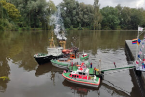 Von Anfang an kamen viele Modellbau Kollegen und zeigten Interesse an dem Slipway Konstrukt und dem Ponton und sogar an den einzelnen Schiffen. Oft mit „…wir kennen uns doch aus dem Forum…“. Es war mir fast schon etwas peinlich nicht alle gleich wiedererkannt zu haben. Ich war echt überfordert an dem Tag, es waren so viele Gespräche und eben das Ausprobieren. Also bitte nicht böse sein und nehmt’s bitte nicht persönlich, ihr könnt mich gerne nochmal per PN in den Foren oder über meine Kontaktemail hier anschreiben.